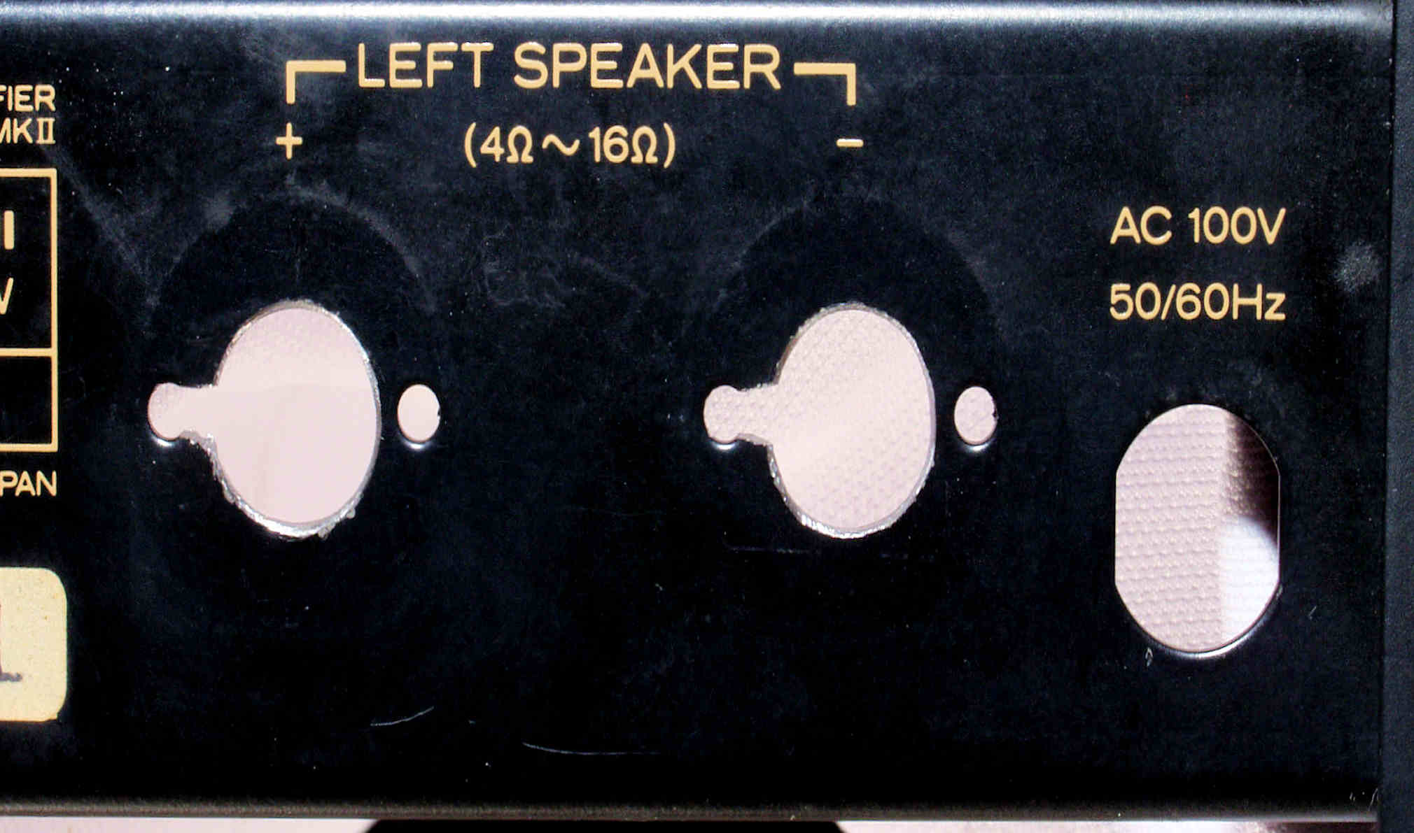 | 注意 このAMPはアースラインが浮いています。 AMPのシャーシにSPの線(アース側)やプリAMPのアースもも接続してはいけません。 RL−SPのアース線も接続(共通)してもいけません、+−の撚りのあるのも使用出来ません。 又、DC(directconnection)入力が可能ですが、絶対に使用しないこと=ここ参照 この「HMA−9500mkU. 32台目」は、過去の「HMA−9500mkU.40台」及び「HMA−9500. 25台」の頂点に立つ優等生です。 過去に大きな事故や故障が無く、終段FET(電界効果トランジスター)が最高の状態の為です。 |