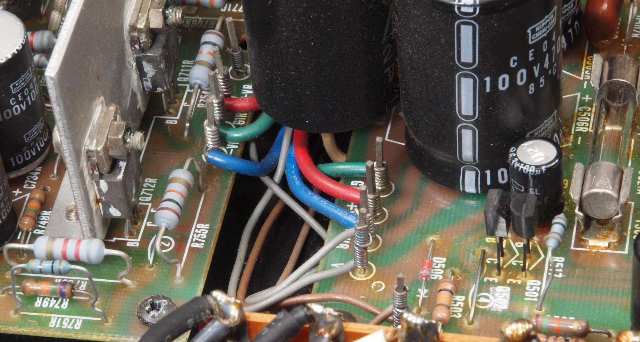 | CA5. 修理前 R側ドライブ基板−電源基板へのラッピング線 |