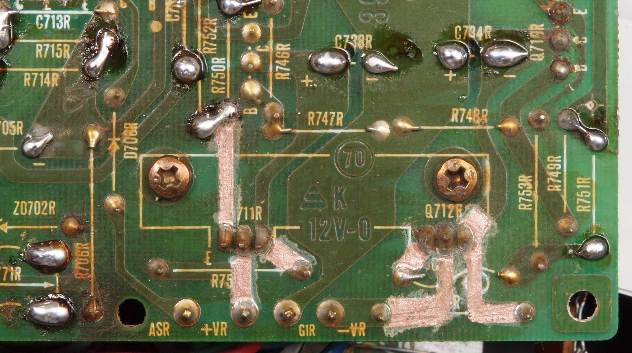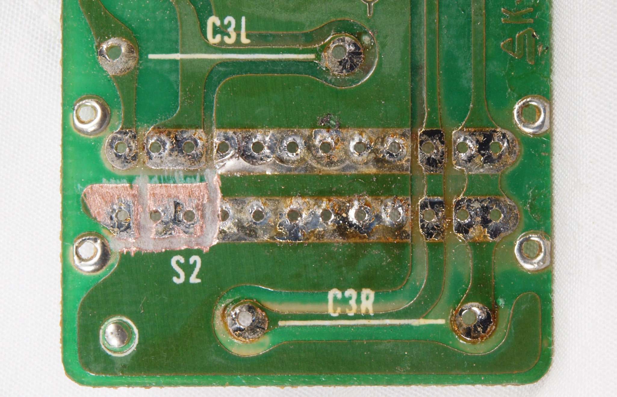 | C16. 修理(半田補正)後 R側ドライブ基板裏 半田を全部やり直す。 普通はこれで完成。 |