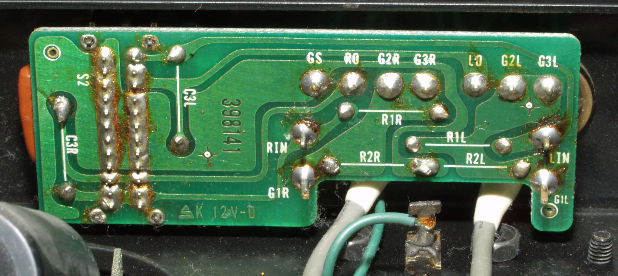 | C6B. 修理前 入力RCA端子基板取付裏 |