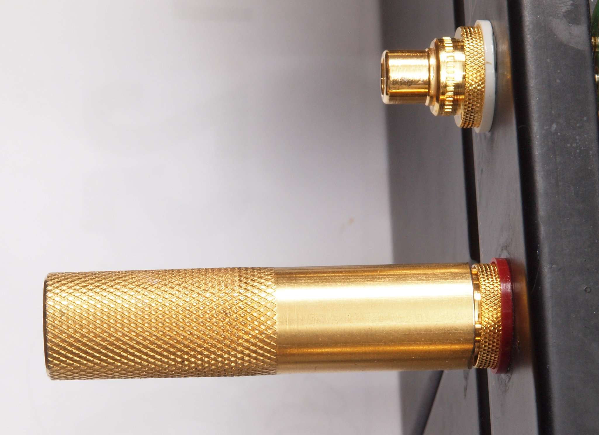| A76. 点検中 WBT製RCA端子 WBT−0201。 さらに複雑な構造で「カチ」と差し込み感を与える。 |