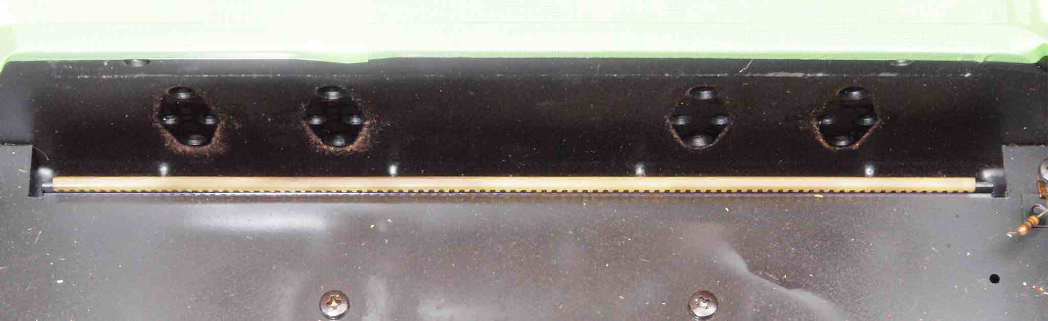 A313. 点検中 下蓋を取り、下から見る。銅箔テープは裏紙がそのままで、コンデンサーに接着していなかった。