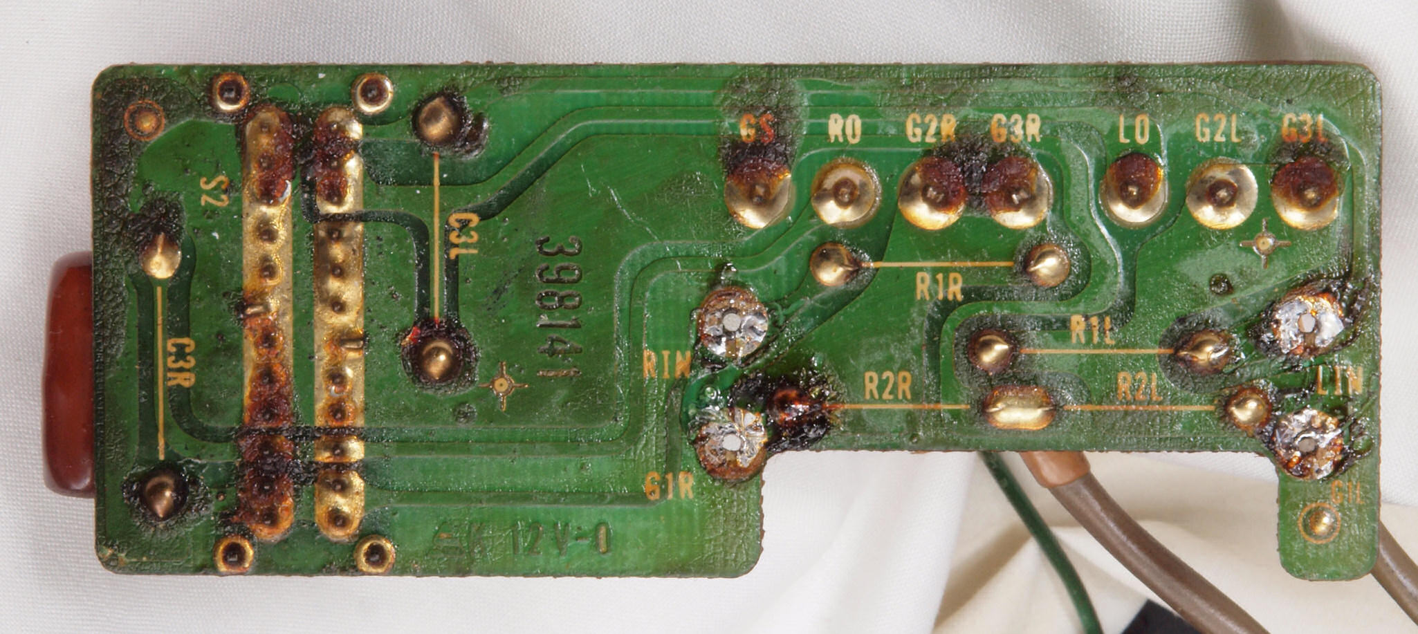 入力切り替えSW分解・清掃C81. 修理中 RCA端子基板の切り換えSW分解。