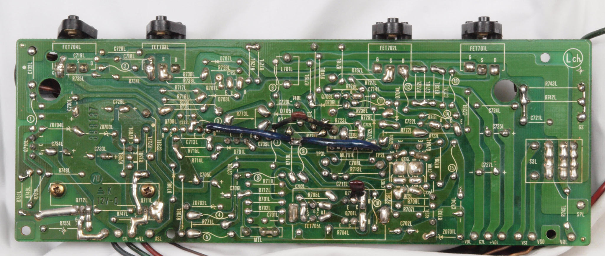 C74. 修理中 入力RCA端子基板裏 L側もW−SWにする為、基板改造。