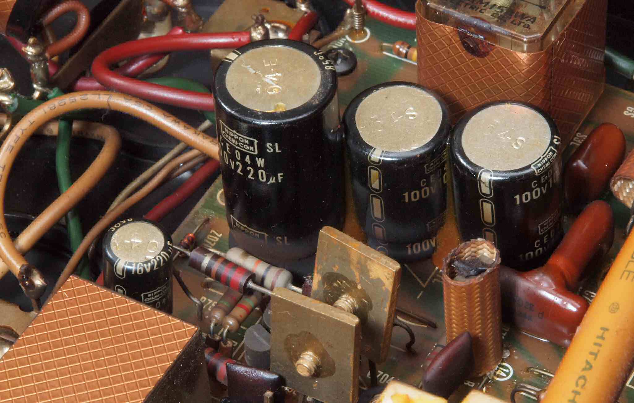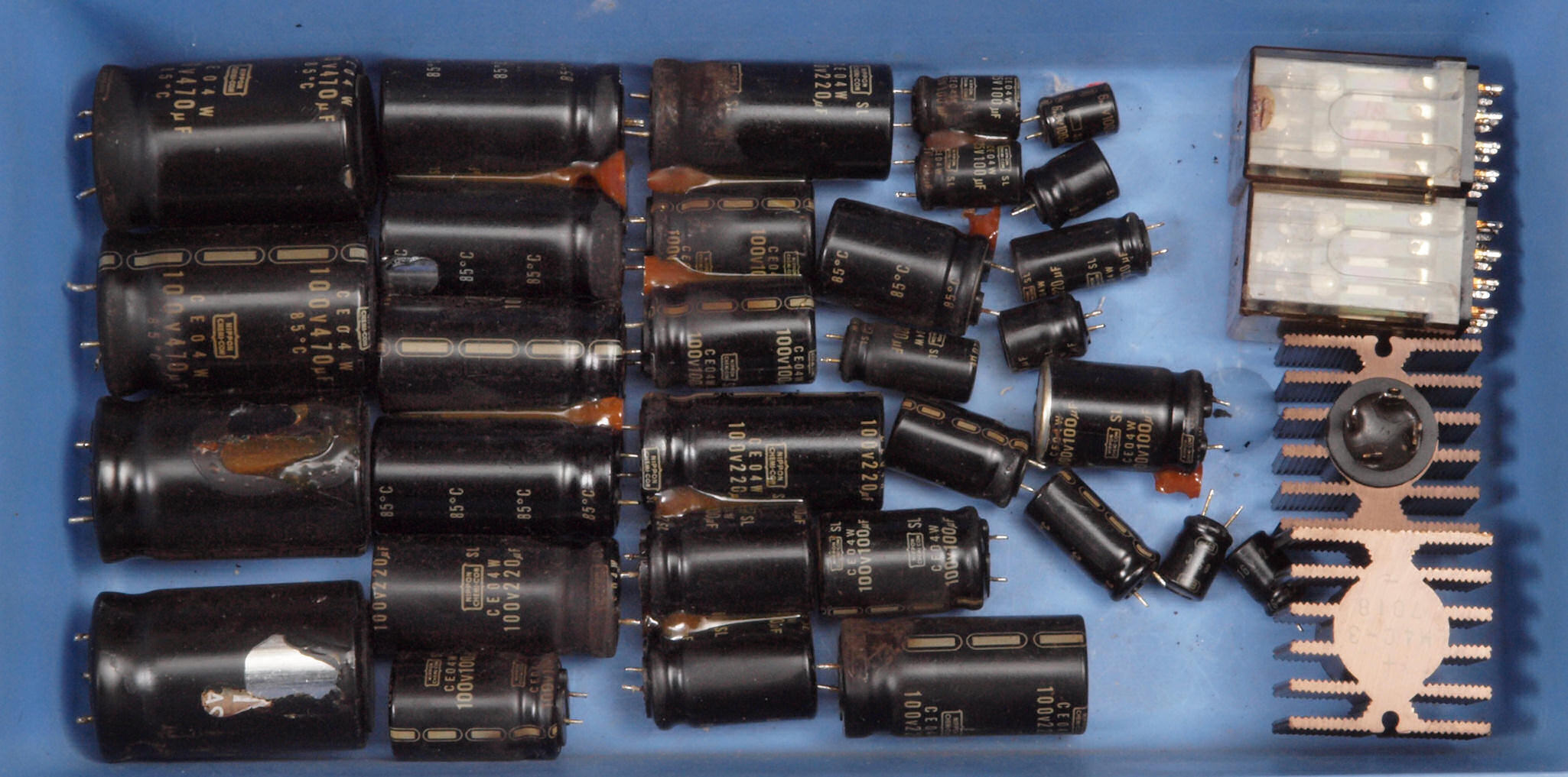 A52. 点検中 電解コンデンサー外観比較、220μ/100V