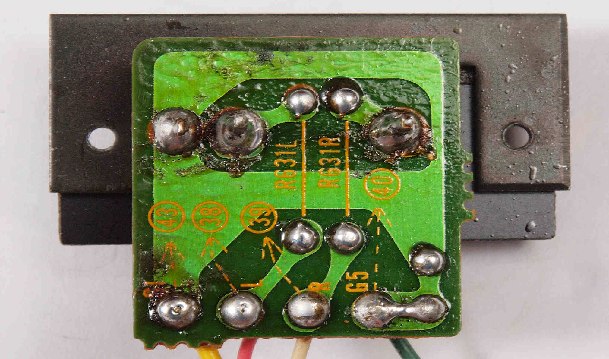 C44. 修理(半田補正)後 トーンAMP基板裏。 全ての半田をやり修す。