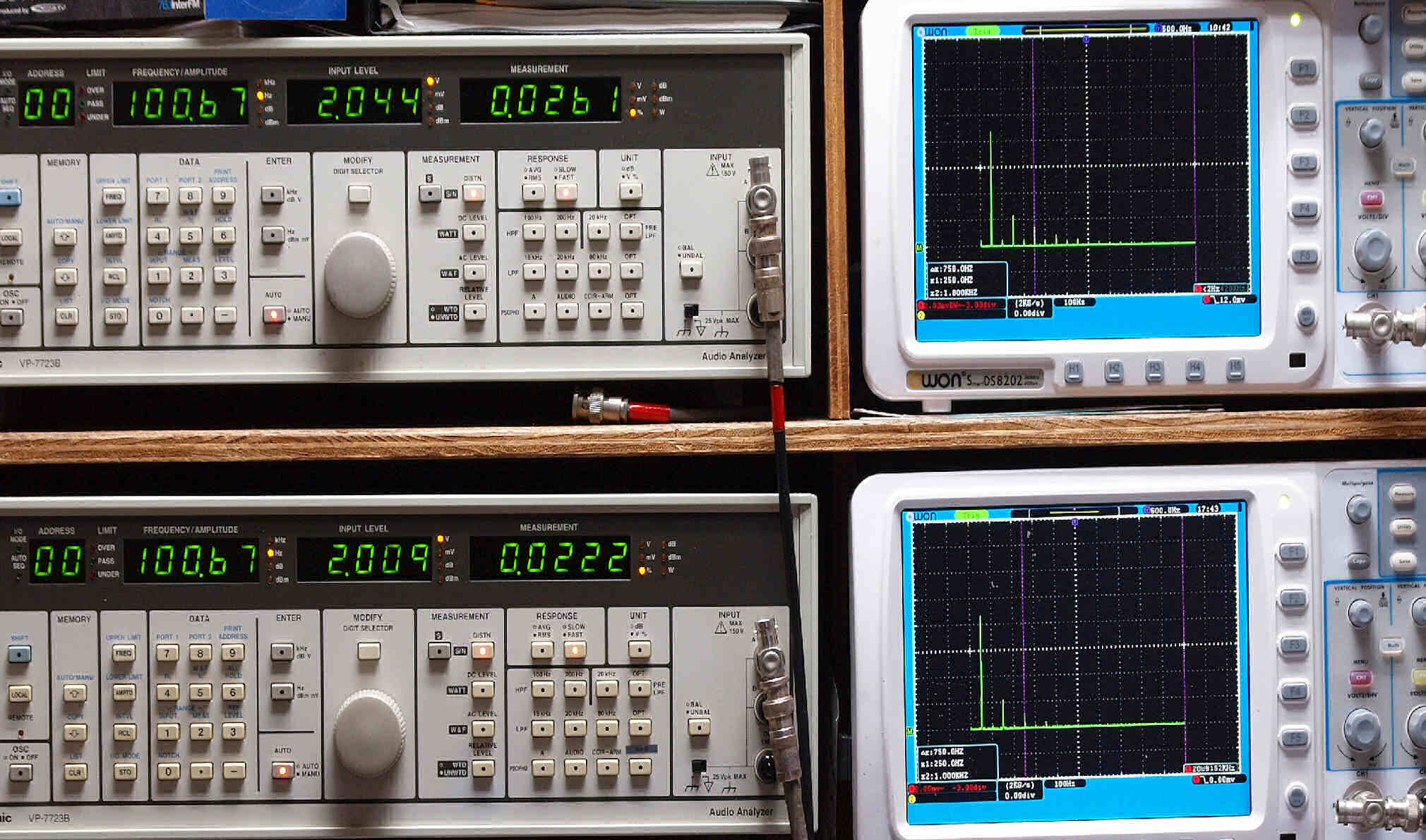 よって、ダイアル設定出力レベルより低くなります。測定機器の仕様や整備の様子はこちら、「VP−7723B」「VP−7201A」。 FFT画面の見方はこちら。