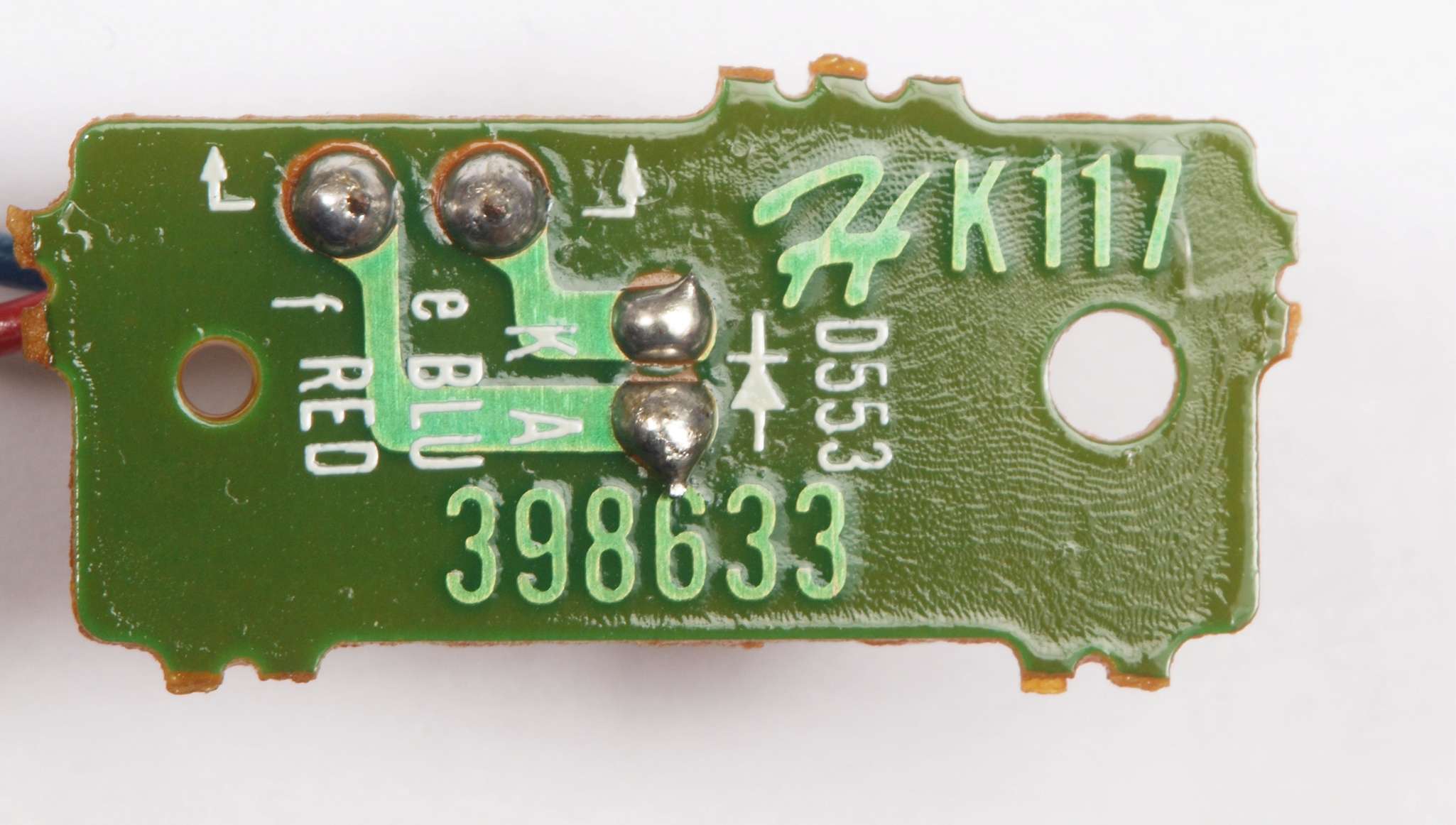 C54. 修理(半田補正)後 右側メーター照明ランプ基板裏、 半田を全部やり直す。