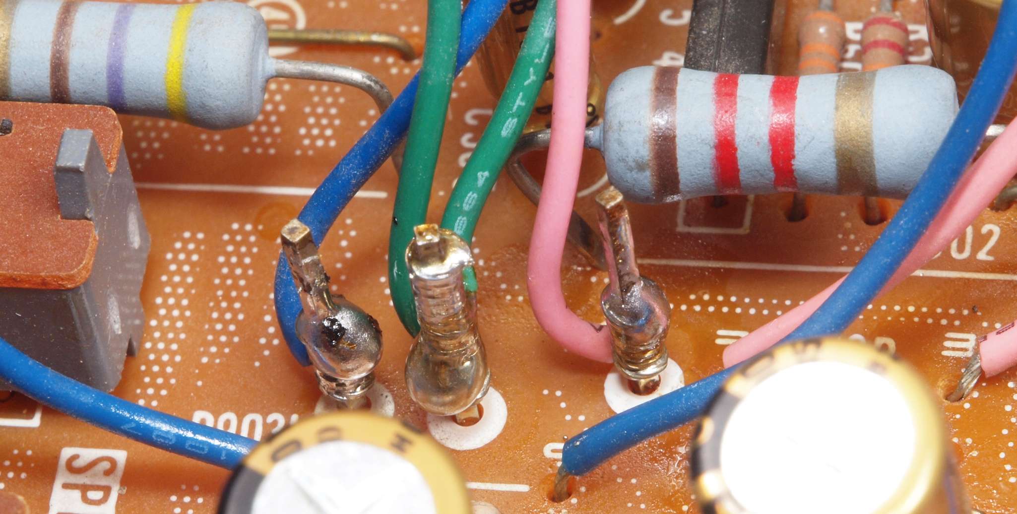 C38. 修理前 メイン基板ラッピング4、 ハンダを染みこます。