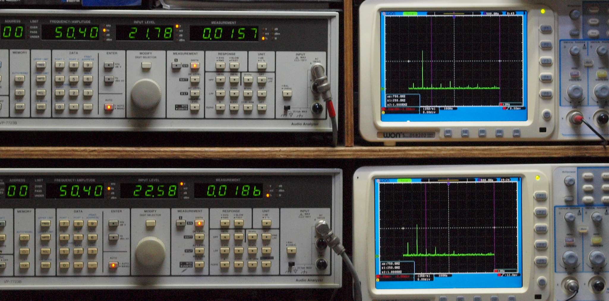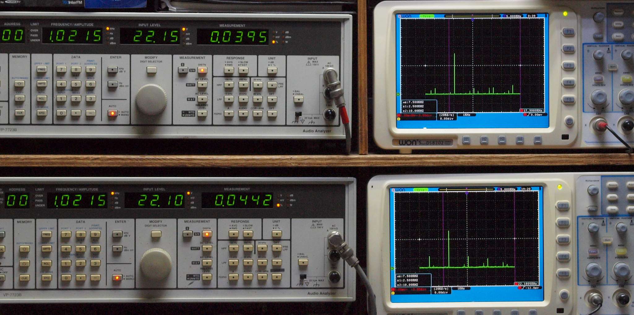 よって、ダイアル設定出力レベルより低くなります。測定機器の仕様や整備の様子はこちら、「VP−7723B」「VP−7201A」。 FFT画面の見方はこちら。