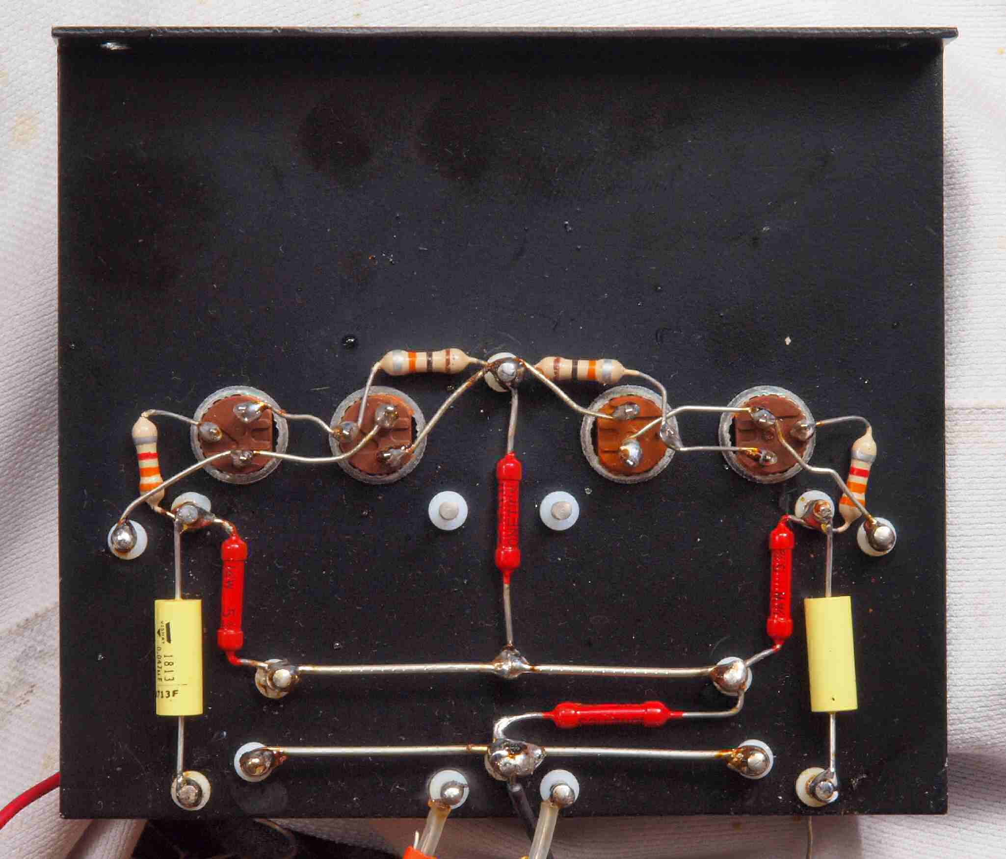 | C34. 修理後 Tone Amplifier Bord Back。 フイルムコンデンサー2個交換。 |