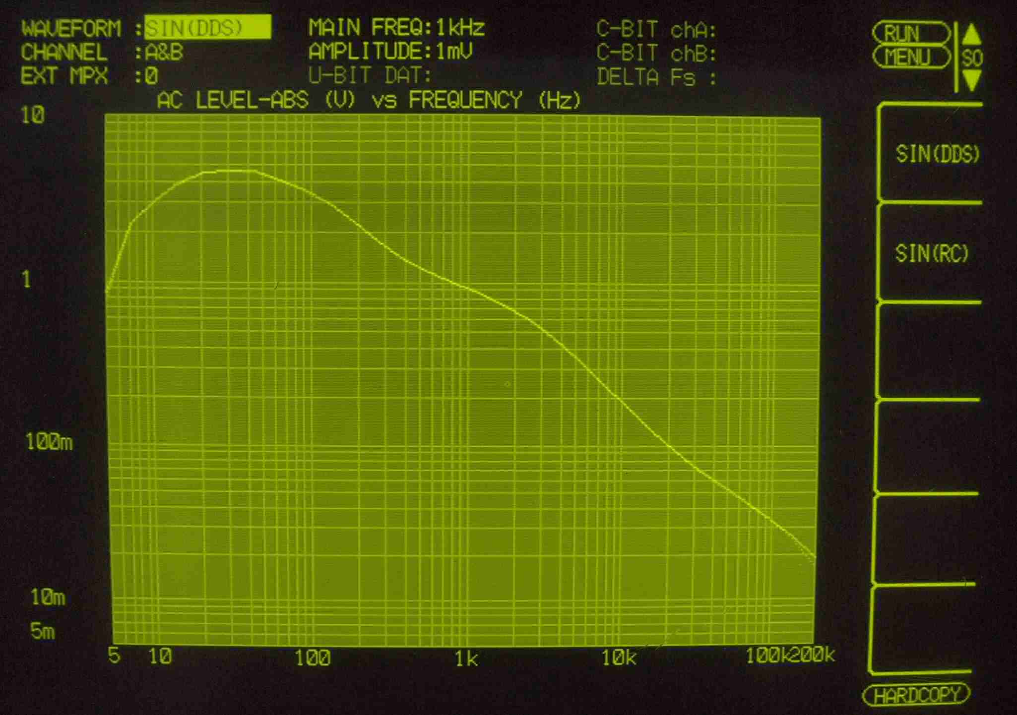 | F. 上位測定器による 調整・測定。 画像をクリックすると、大きく(横幅2050ドット)表示されます。 F1. 下のオーディオアナライザーVP−7732Aで自動測定。 |