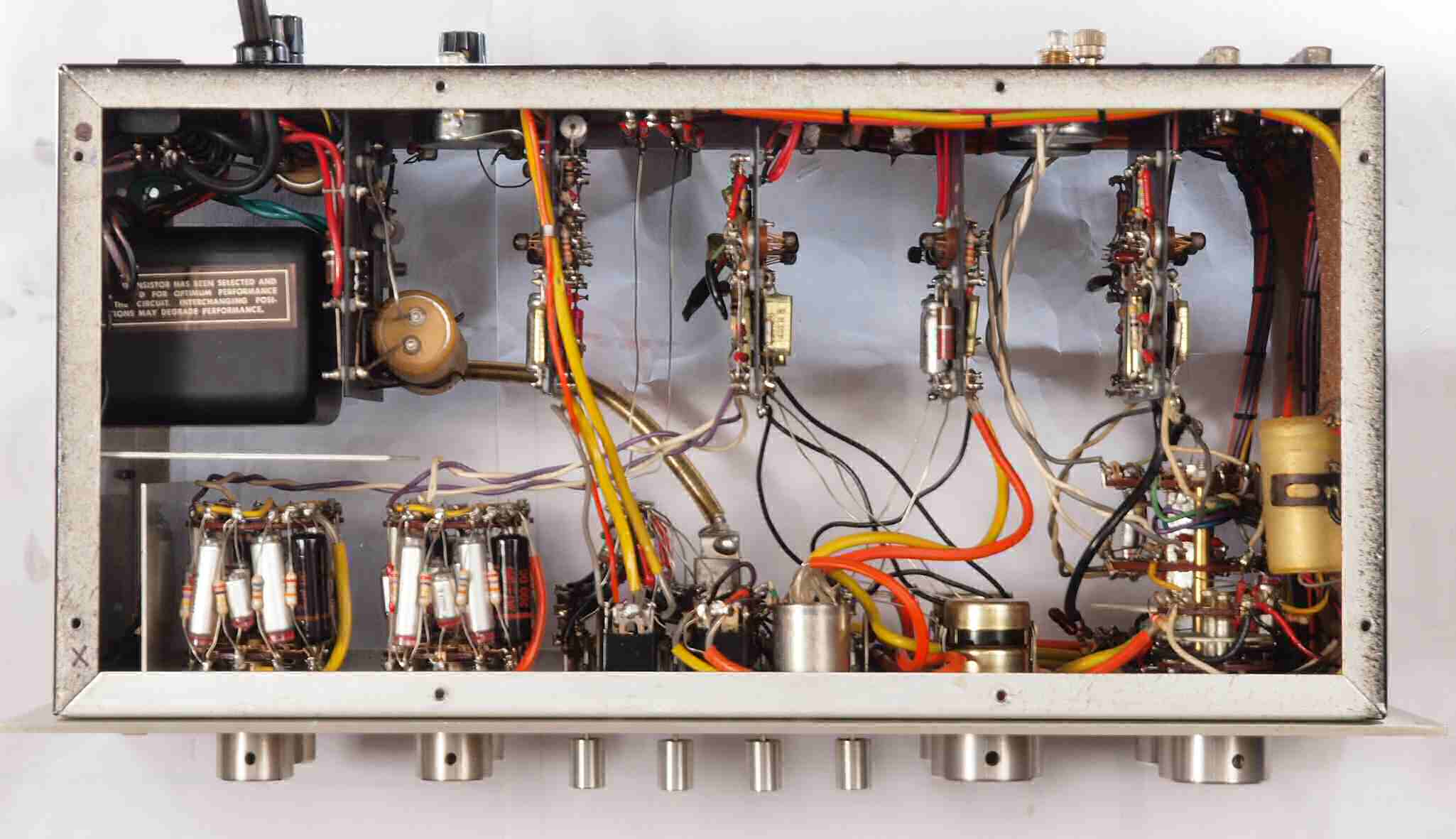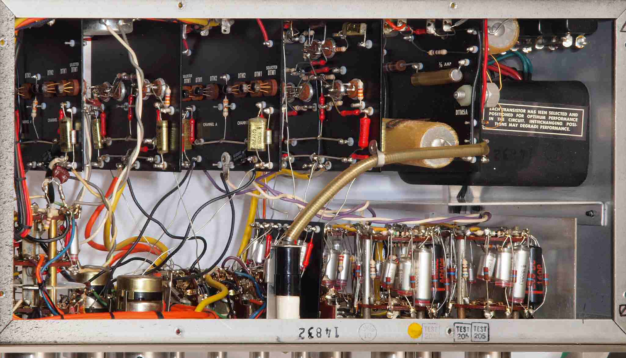 | C14. 修理後 Low_Level Amplifier Bord Back。フイルムコンデンサー2個交換、フイルムコンデンサー2個追加。 |