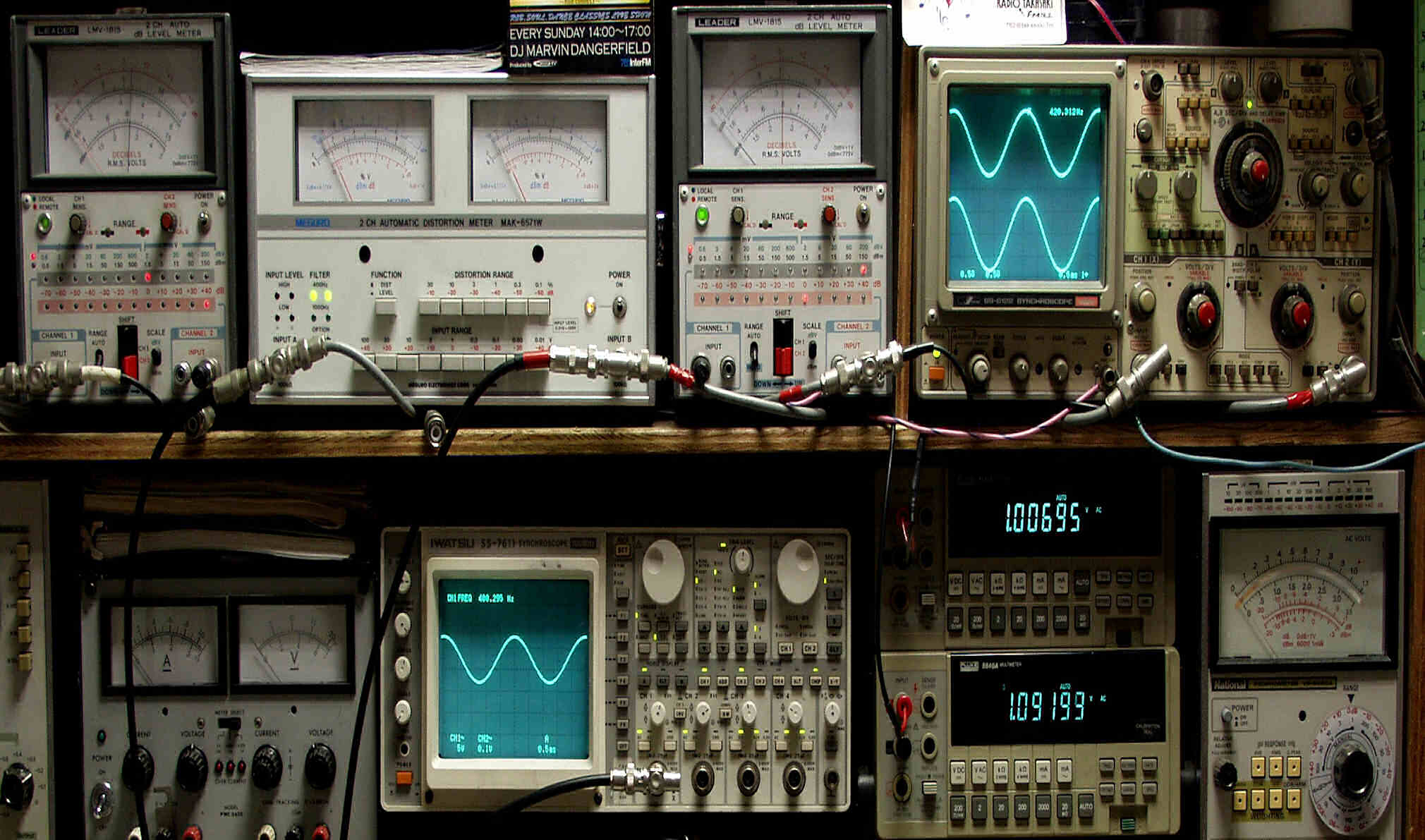 | EE. 上位測定器による 調整・測定 EE0. 下のオーディオアナライザーVP−7732Aで自動測定。 |