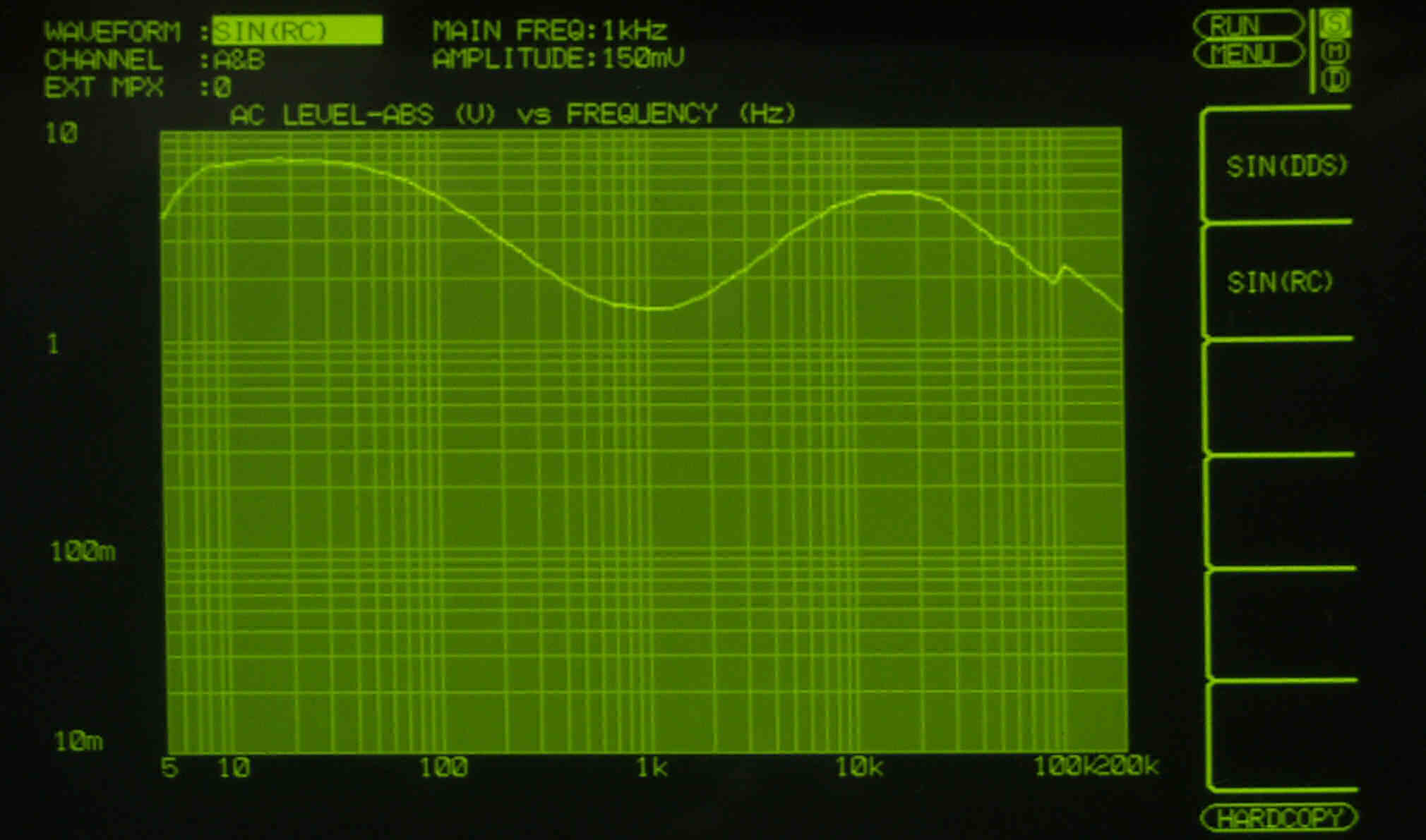 | E5A. 出力電圧13V 歪み率=0.01% 測定レンジ=0.1% AUX入力 1000HZ 見かけによらず、力が有るので注意 |