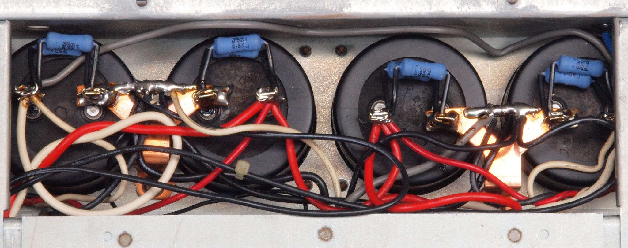 | C92. 修理後 R側前段部電源ブロック電解コンデンサー。フイルムコンデンサー2個追加。 | ||||||||||||||||||||||||