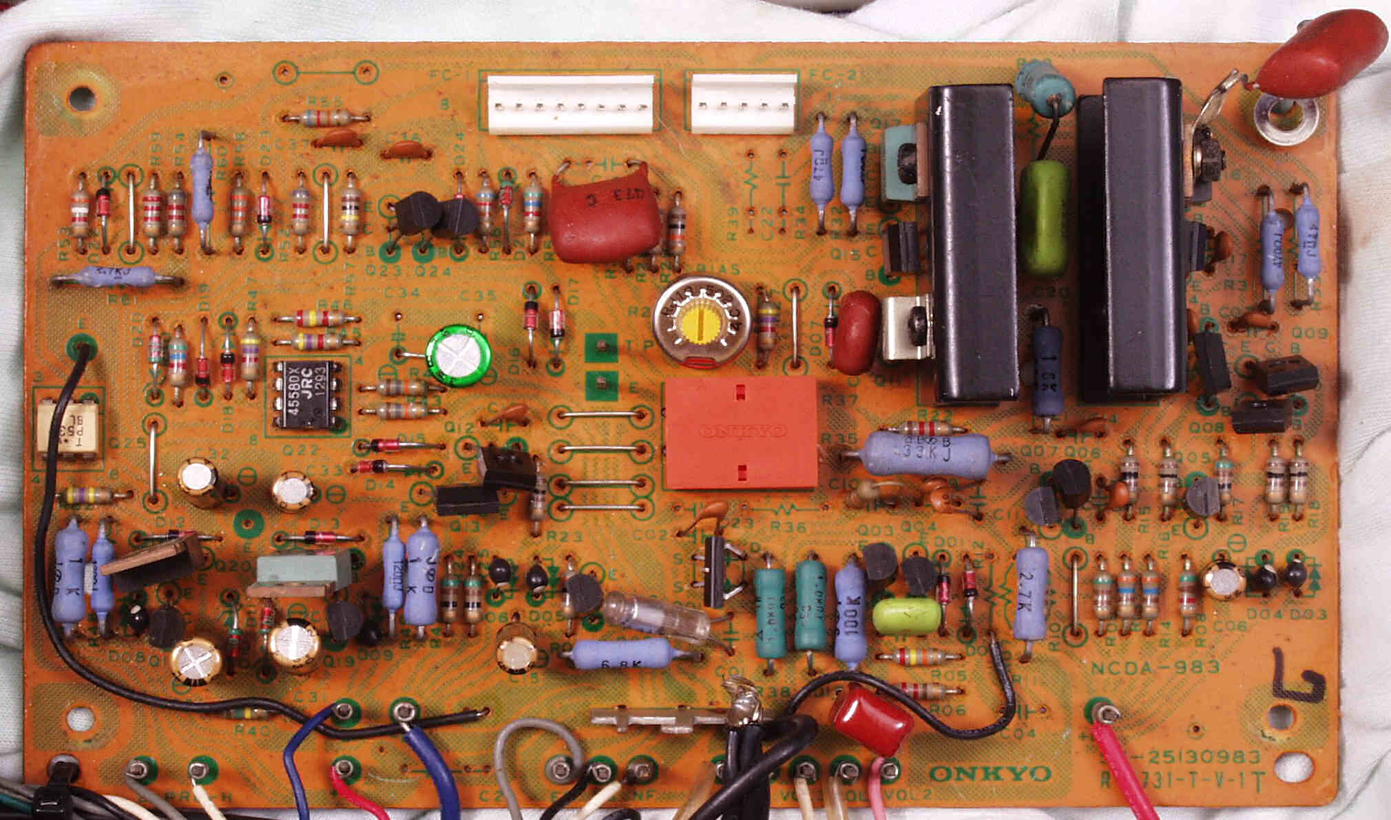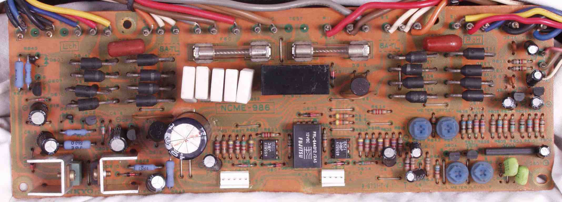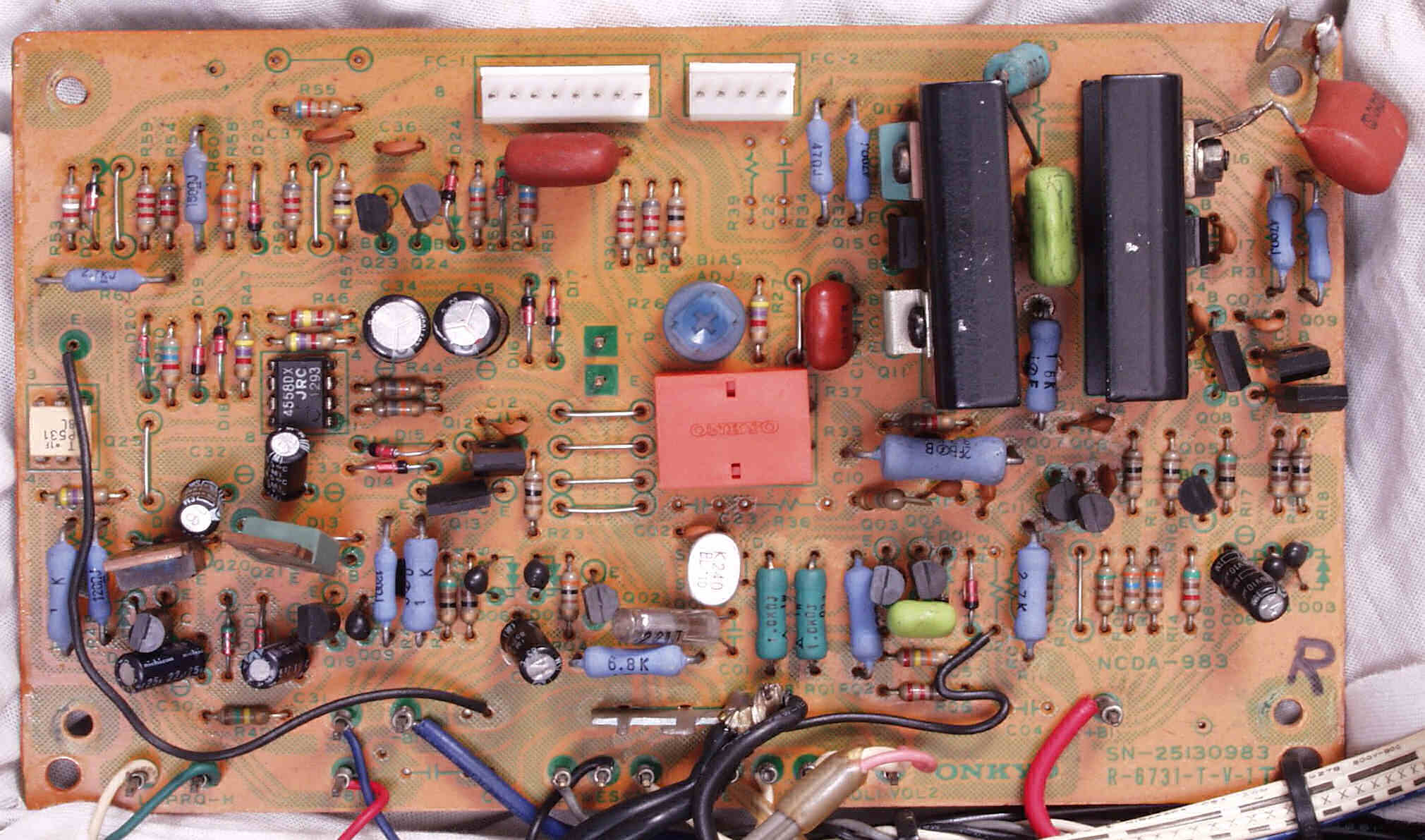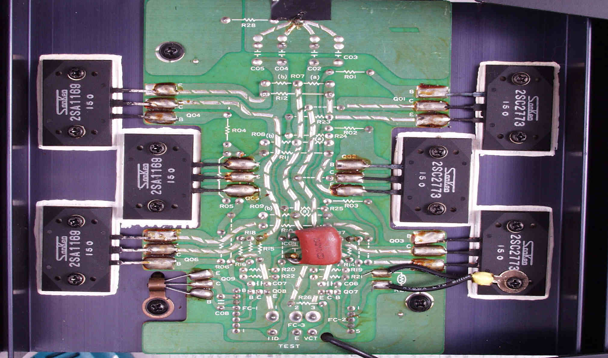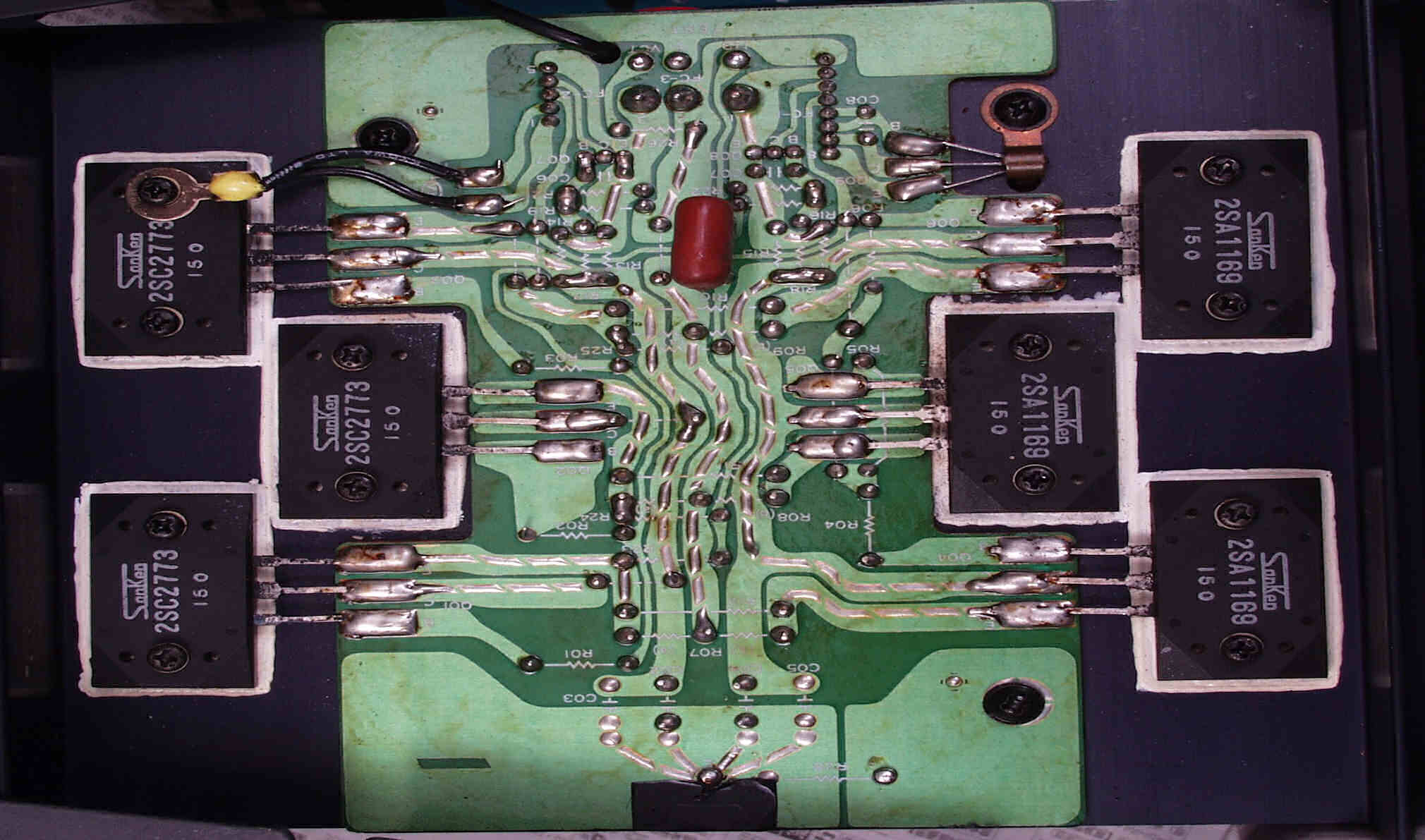 C31. 修理前 R側終段TR(トランジスター)基盤。