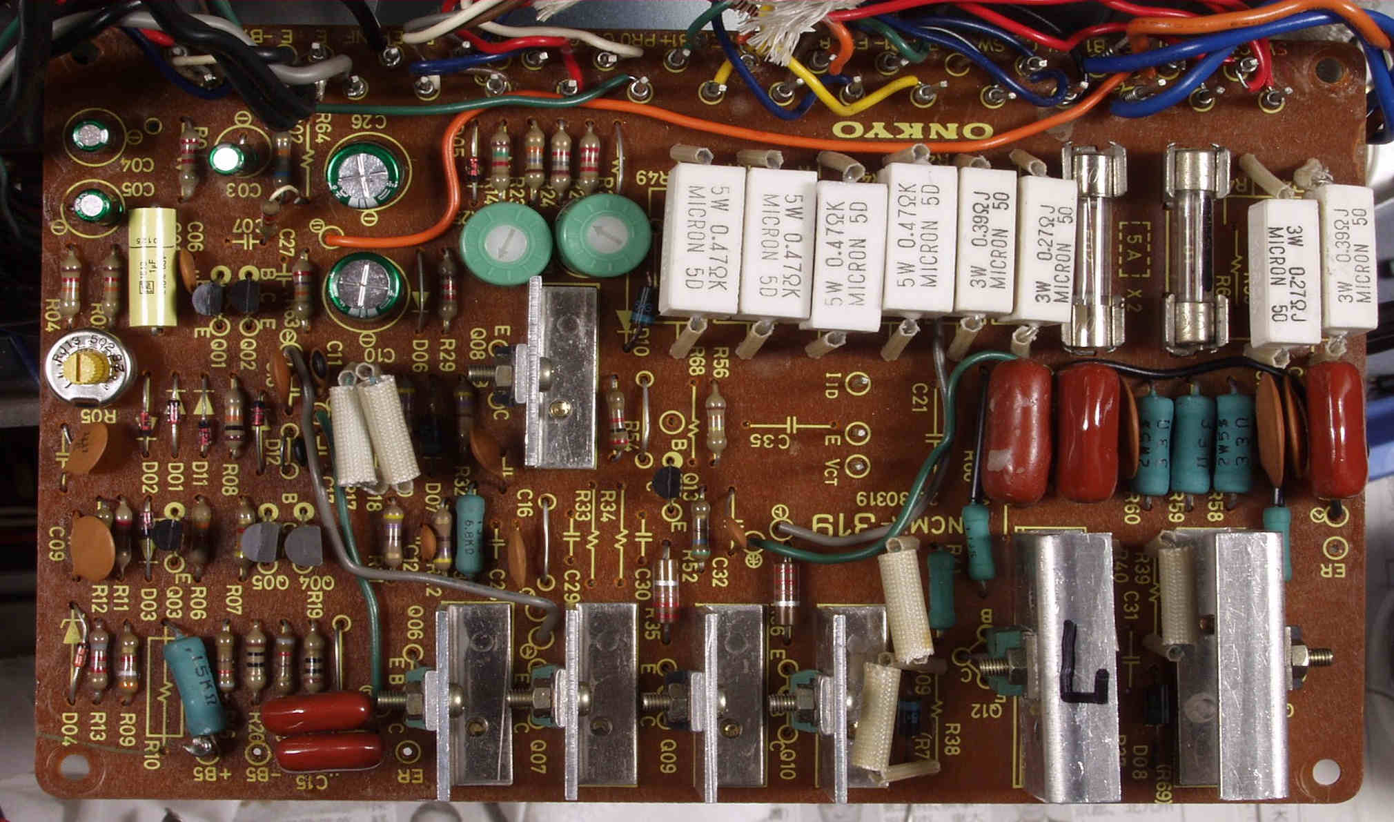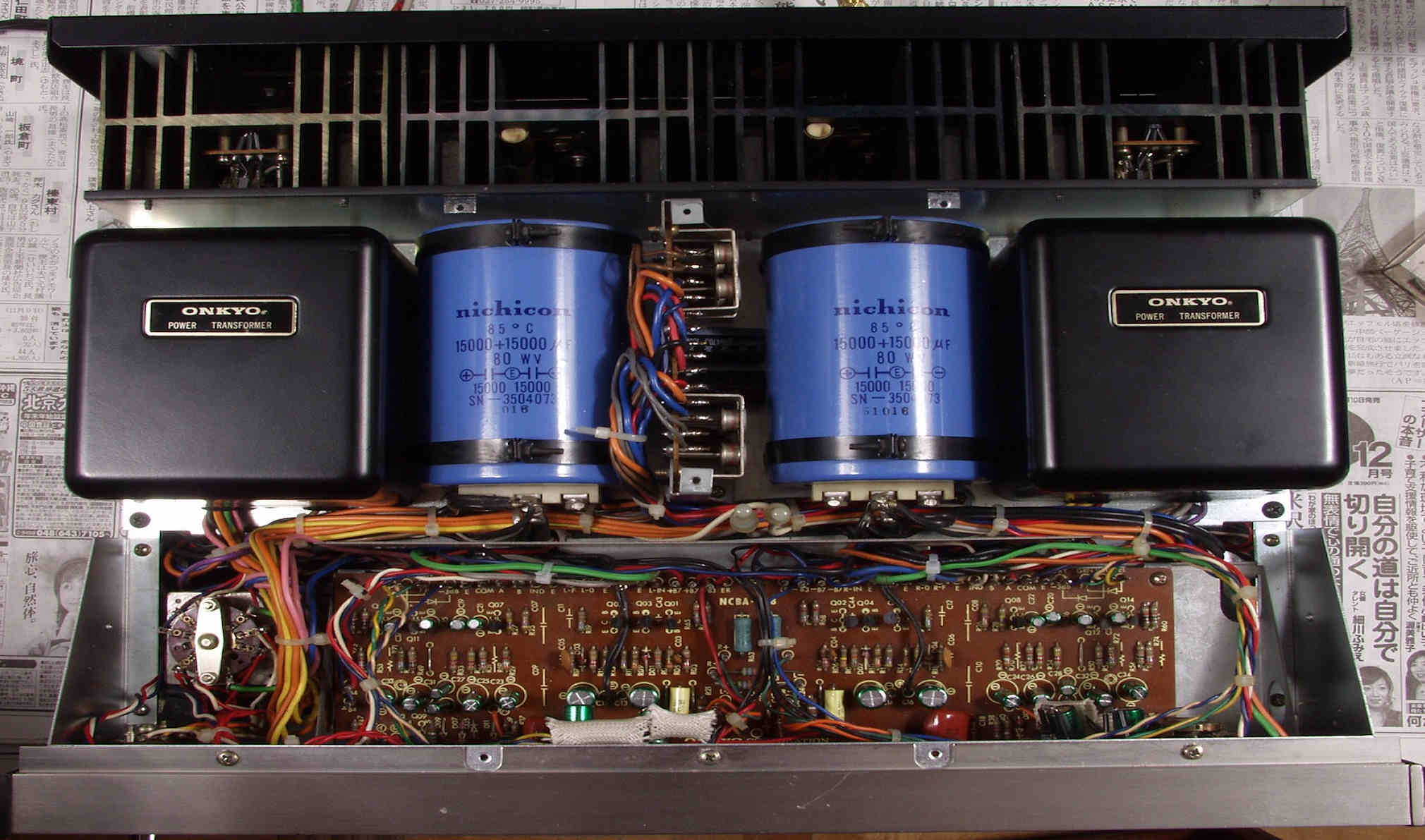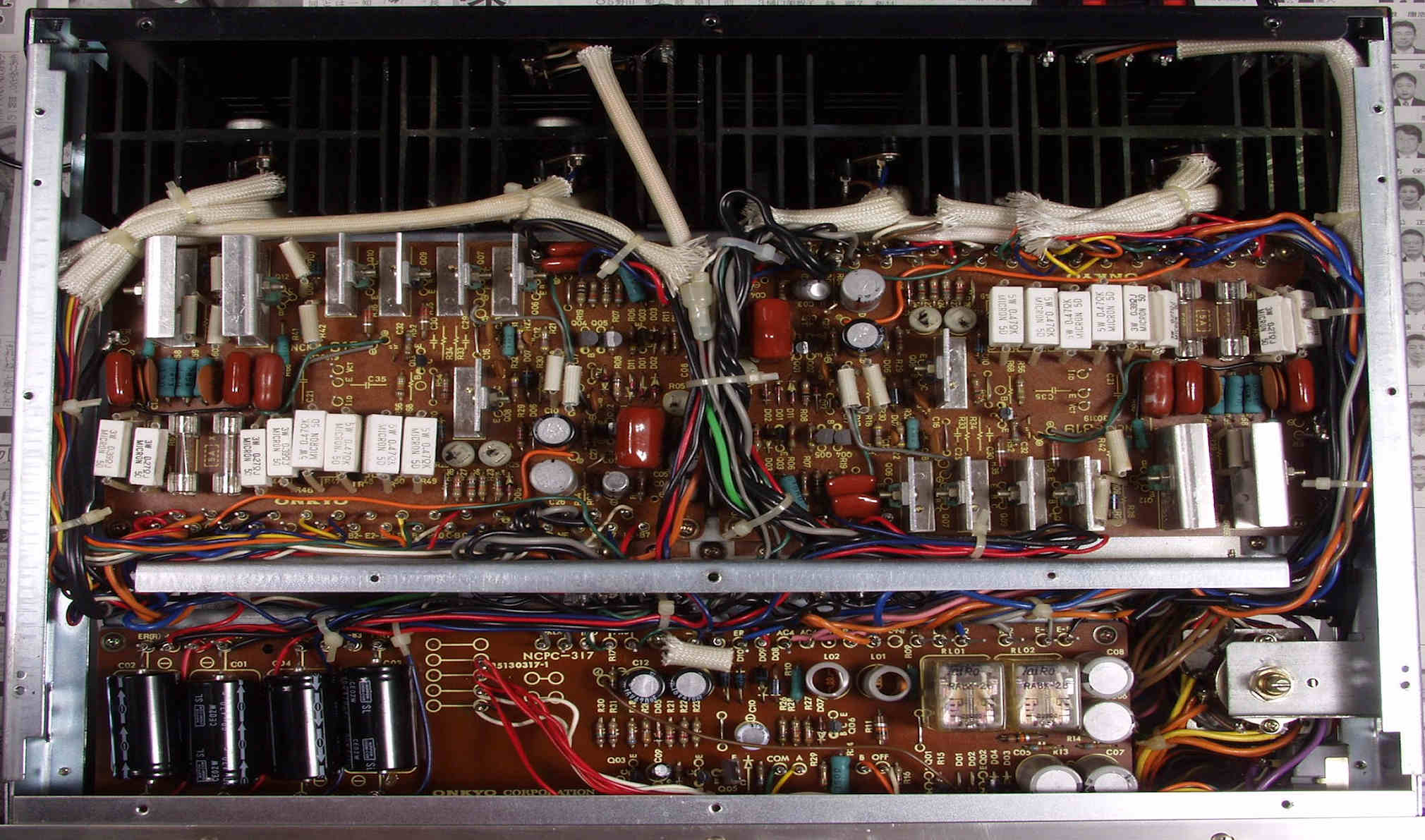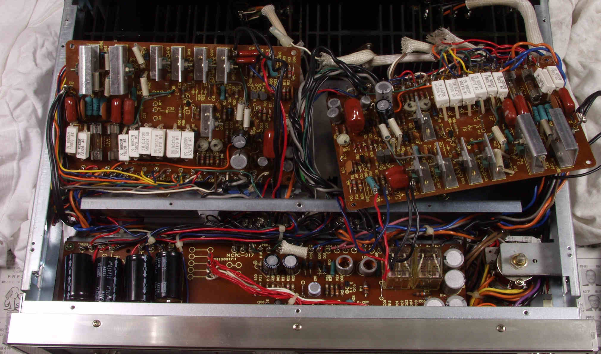 A1. 修理前 上から見る、非常に綺麗です 大きい電解コンデンサーが目を引く。
