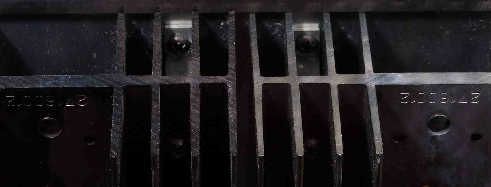 A3. 修理前 放熱器の色がRLで異なる、バイアスがずれチンチンに温度が上がった。