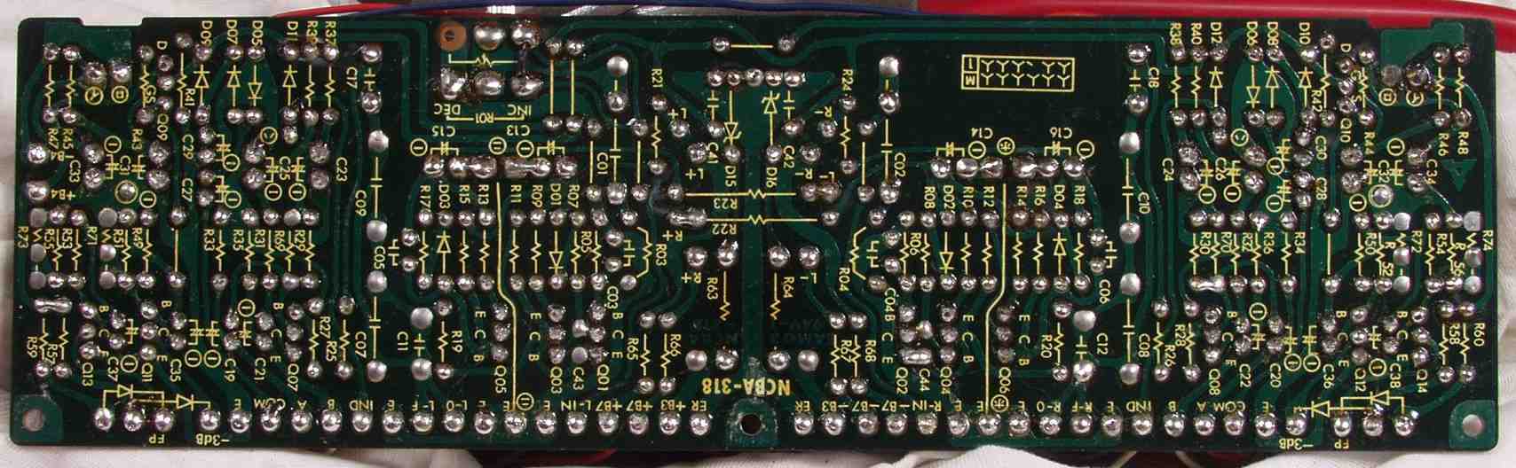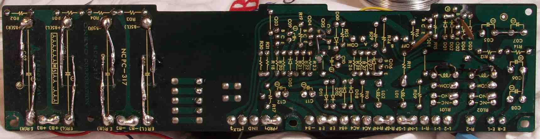 C5B. 修理(半田補正)後 プリAMP・ピークモニター基板裏  半田を全部やり直す