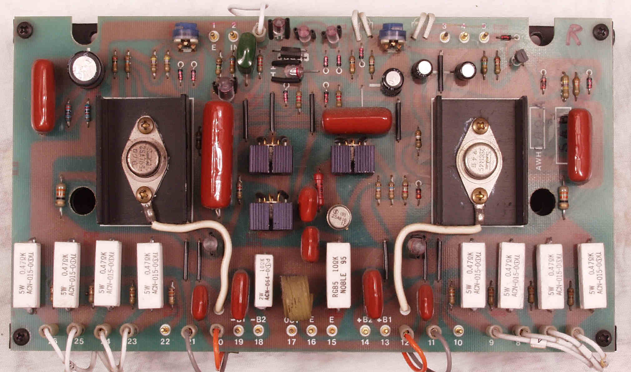 | C1B. 修理後 R−AMP基板 バランス・バイアス調整用半固定VR2個、電解コンデンサー4個、フイルムコンデンサー1個交換 | ||||||||||||||||||||||||||||||||||||||||||