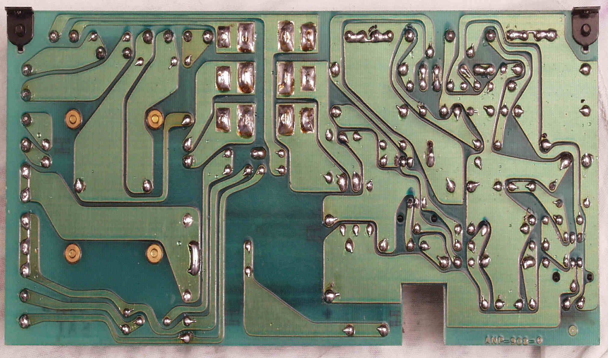 | C1D. 修理(半田補正)後 R−AMP基板裏 半田を全部やり直す、銅箔は厚いので熱容量の大きいハンダ鏝使用 | ||||||||||||||||||||||||||||||||||||||||||