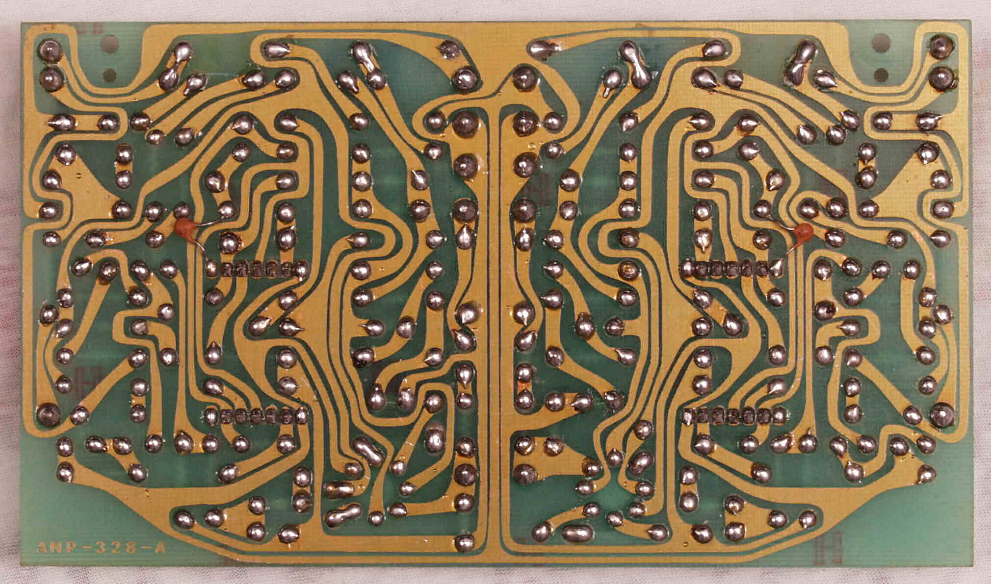 | C2D. 修理(半田補正)後 L−AMP基板裏 半田を全部やり直す、銅箔は厚いので熱容量の大きいハンダ鏝使用 | ||||||||||||||||||||||||||||||||||||||||||