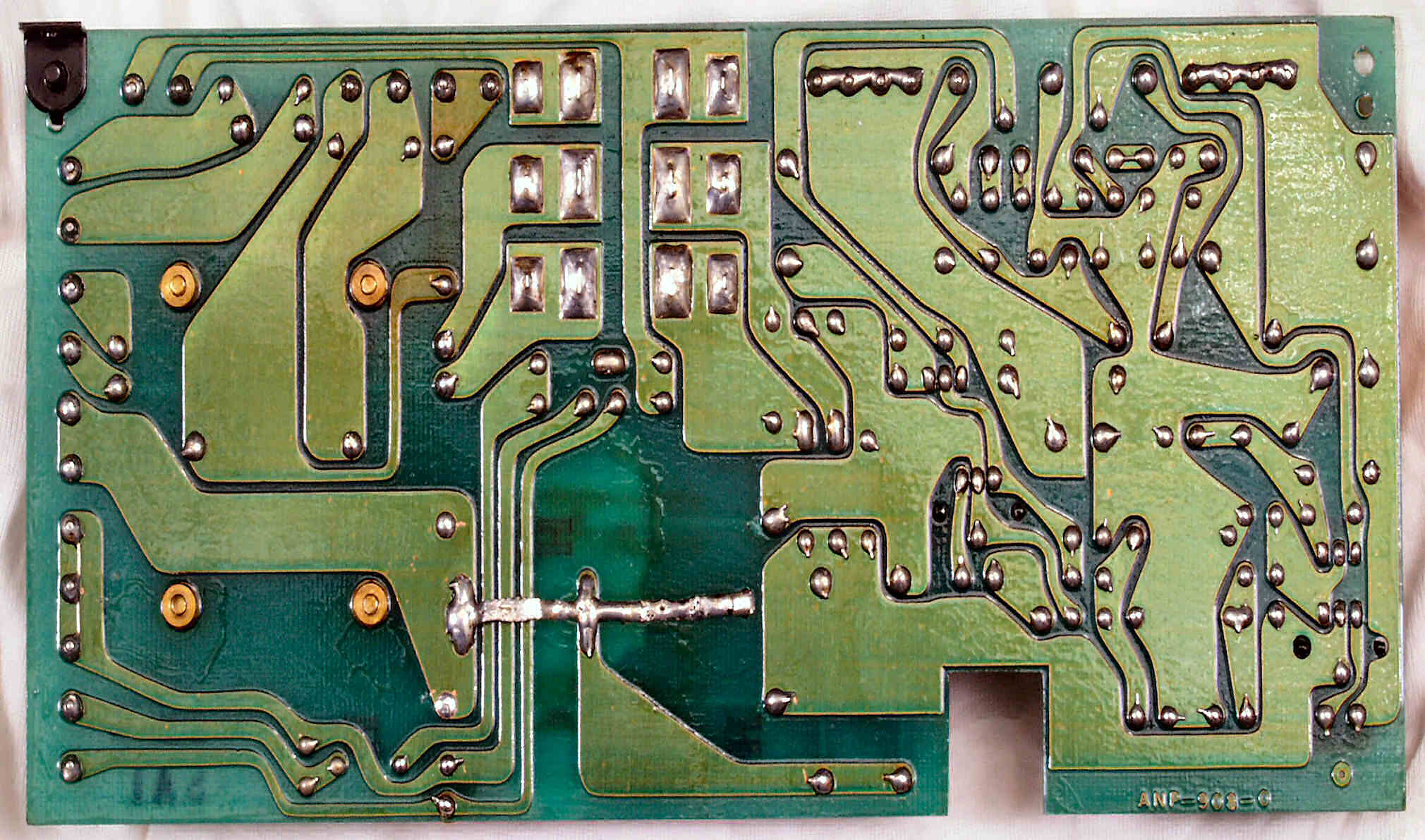 | C14. 修理(半田補正)後 R−AMP基板裏 半田を全部やり直す、銅箔は厚いので熱容量の大きいハンダ鏝使用 | ||||||||||||||||||||||||||||||||||||||||||
