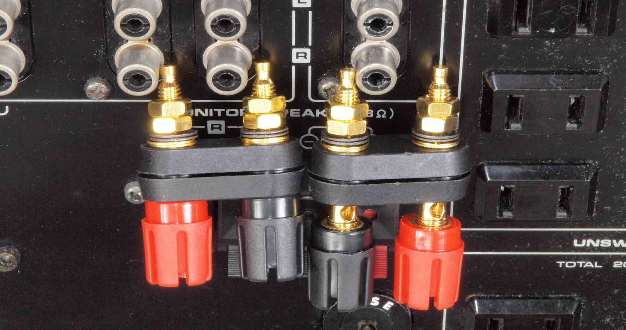 | CA2. 修理(交換)後 SP接続端子。 バナナプラグ対応金メッキのSP接続端子に交換。通線穴は上下。 | ||||||||||||||||||||||||||||||||||||||||||||||||||||||||||||||||||||||||