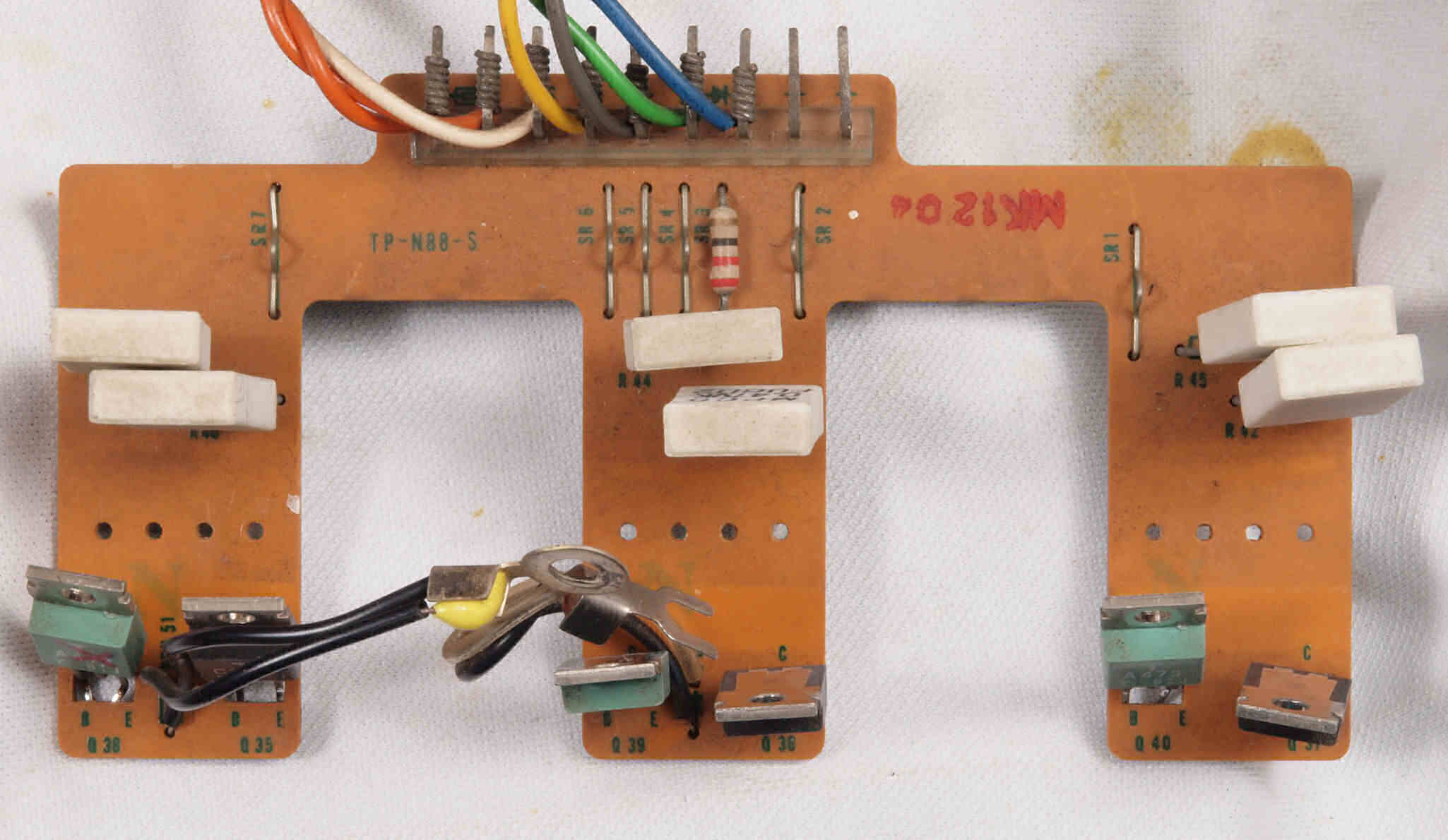 このTR(トランジスター)は現在の亥製品と足の並びが異なり、かつ放熱器付きなので、交換しにくい