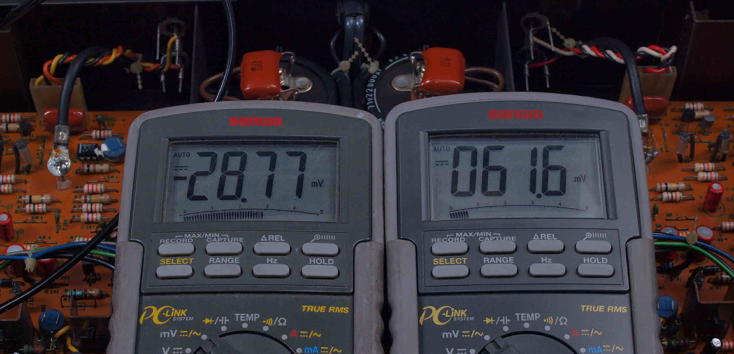| A46. 点検中 電源投入10分後の、バランス漏れ電圧、最終修理が昭和63年ですから、立派なものです! | ||||||||||||||||||||||||||||||||||