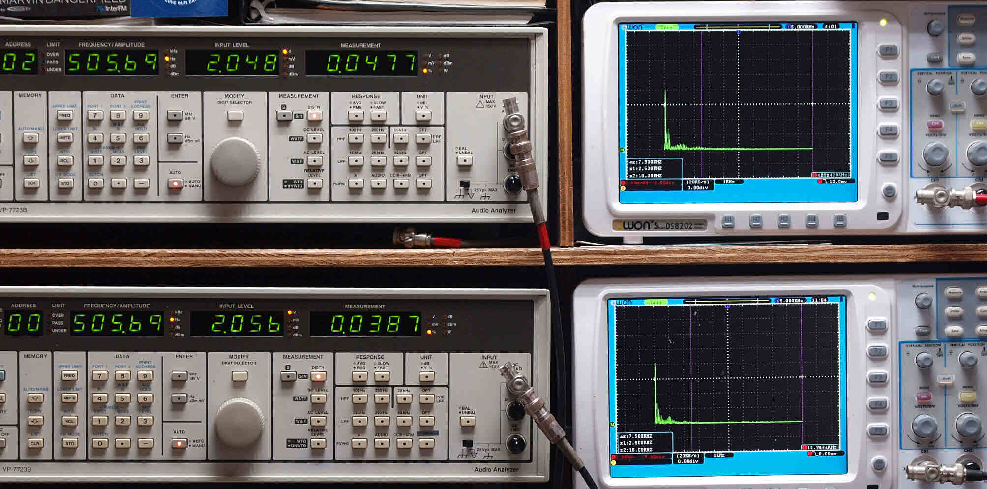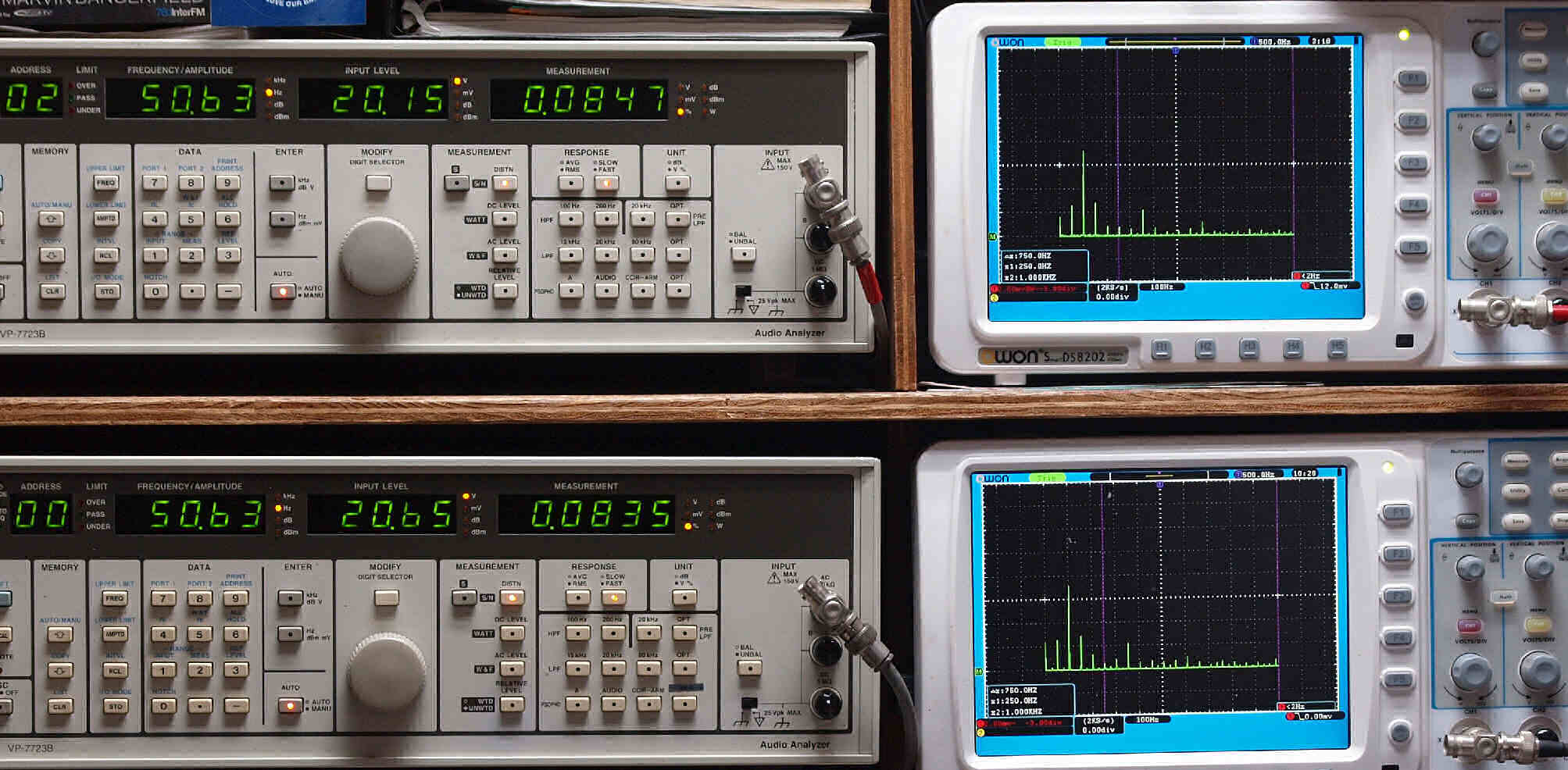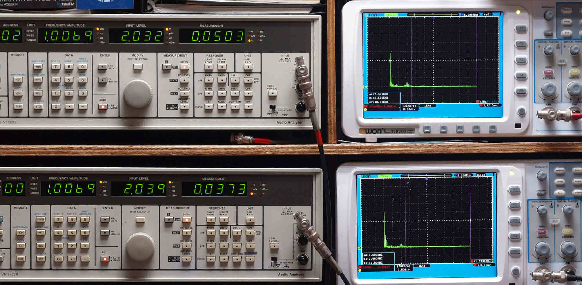 よって、ダイアル設定出力レベルより低くなります。測定機器の仕様や整備の様子はこちら、「VP−7723B」「VP−7201A」。 FFT画面の見方はこちら。