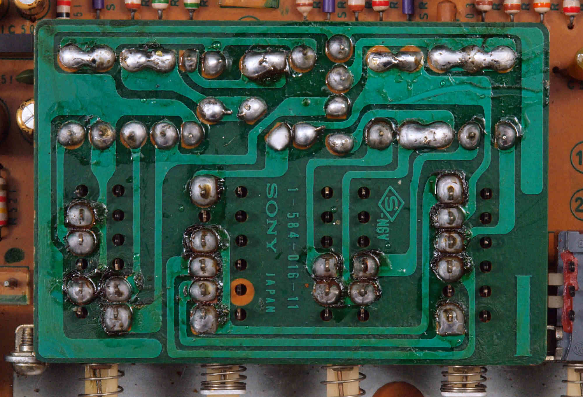 C85. 完成入出力フォノ端子基板裏  洗浄後防湿材を塗る