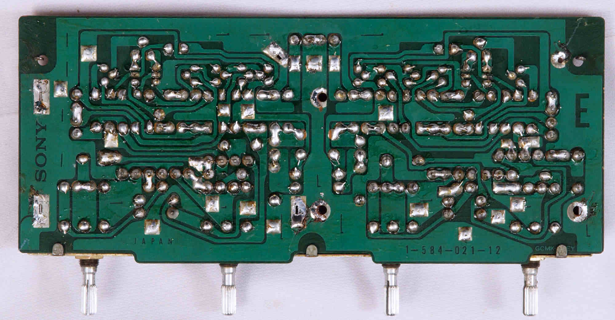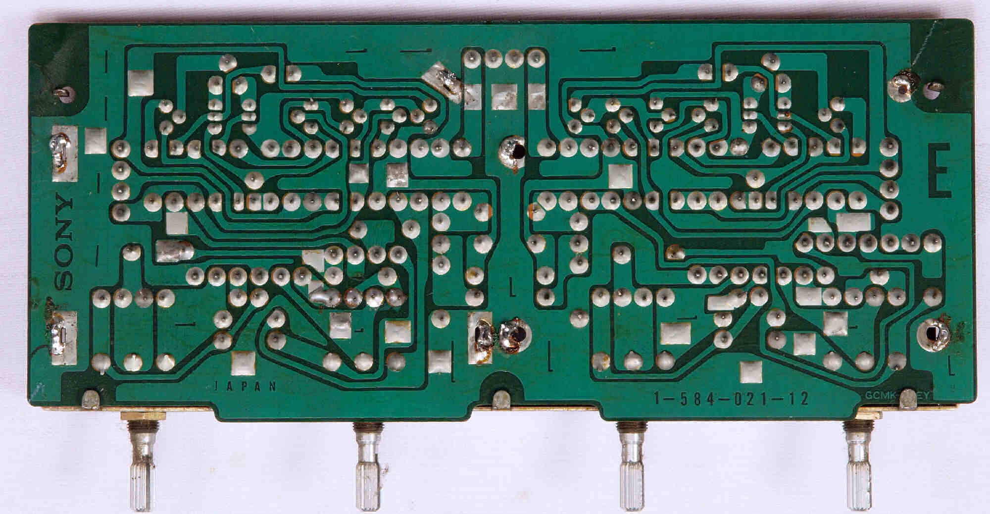 C74. 修理(半田補正)後 入出力RCA端子郡基板裏 半田を全部やり直す。