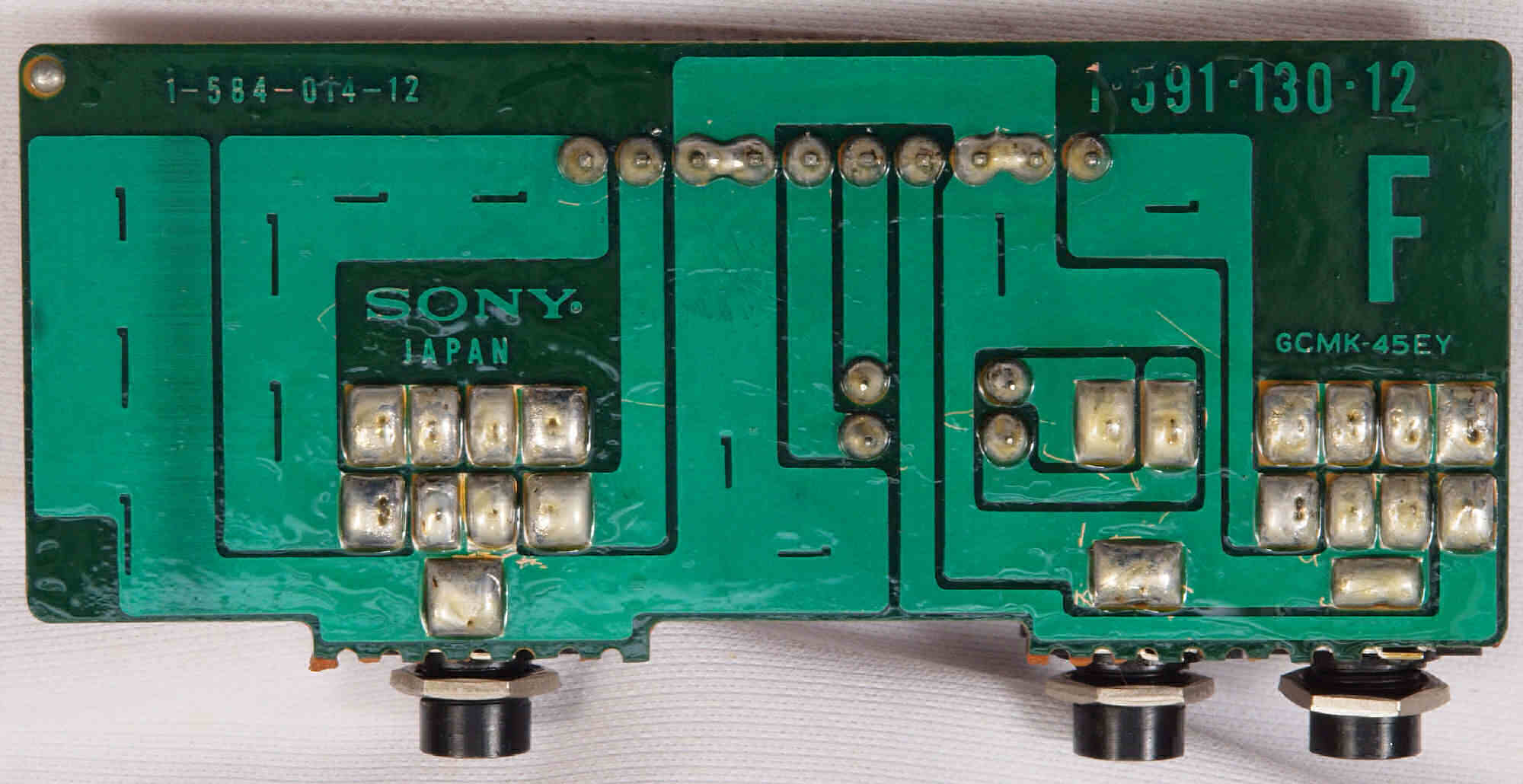 C84. 修理(半田補正)後 入出力フォノ端子基板裏 半田を全部やり直す。