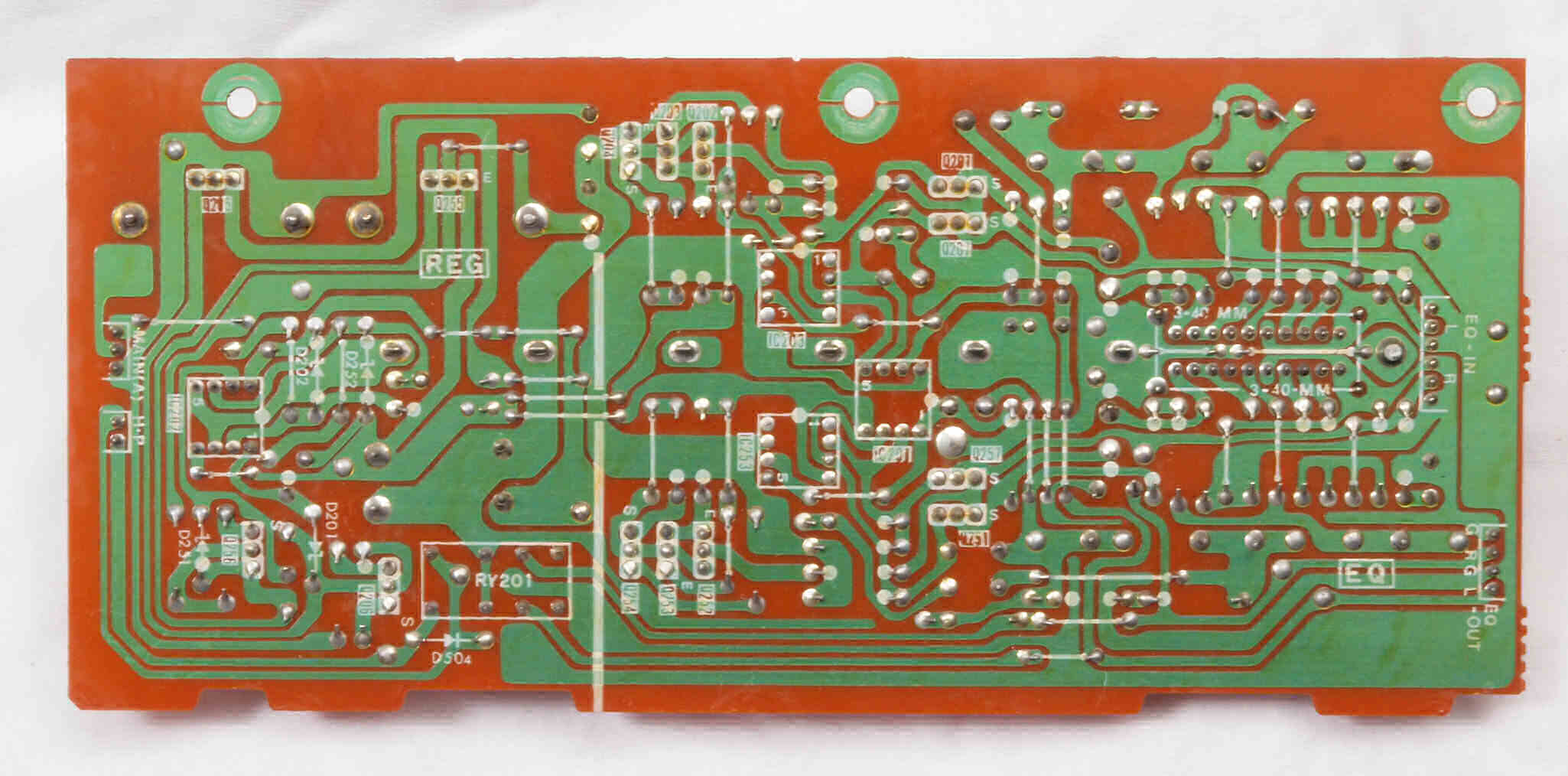 C34. 修理(半田補正)後 EQ−AMP基板裏。 全ての半田をやり修す。