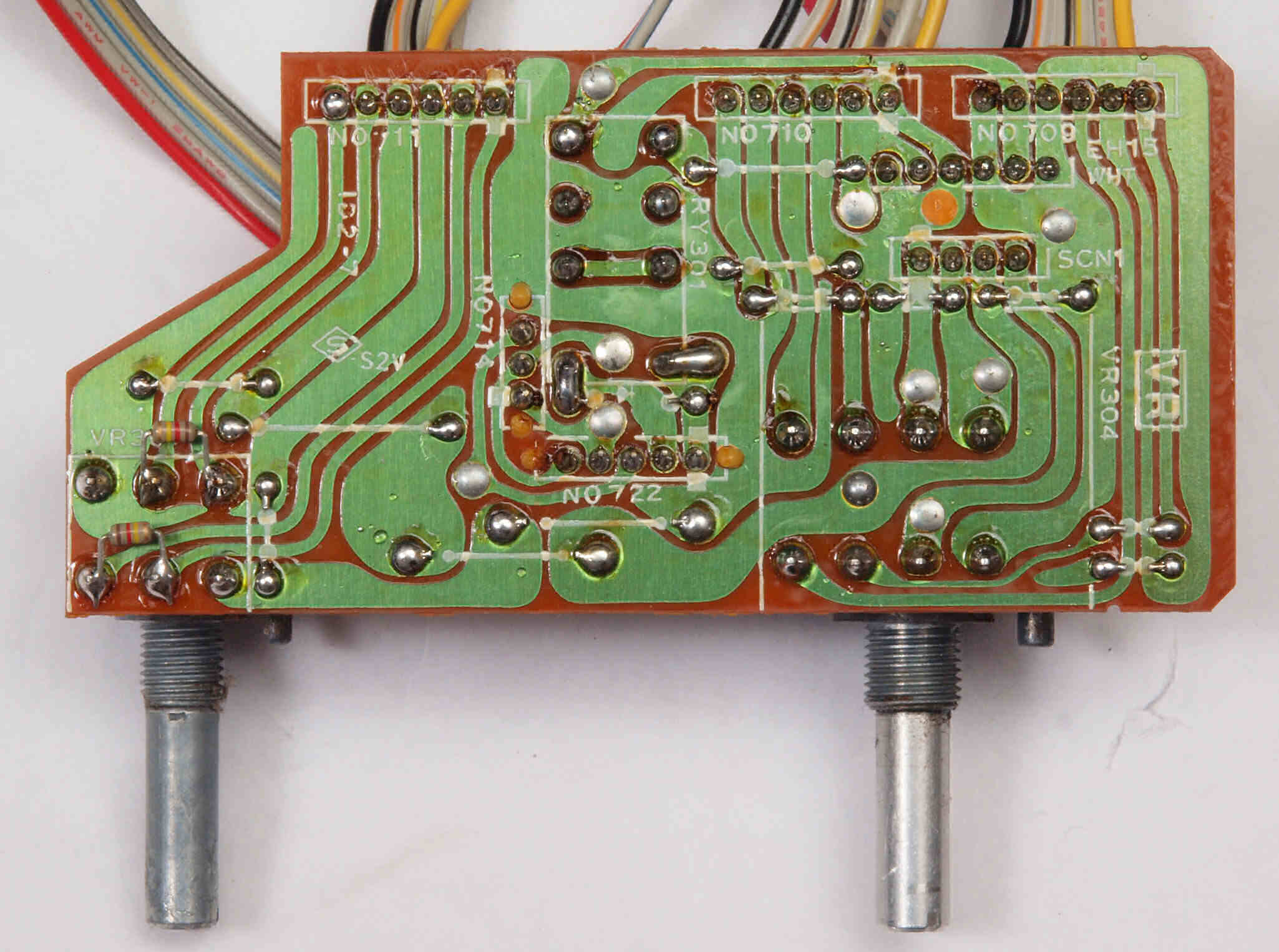 C74. 修理(半田補正)後 メインVR基板裏、  全ての半田をやり修す。