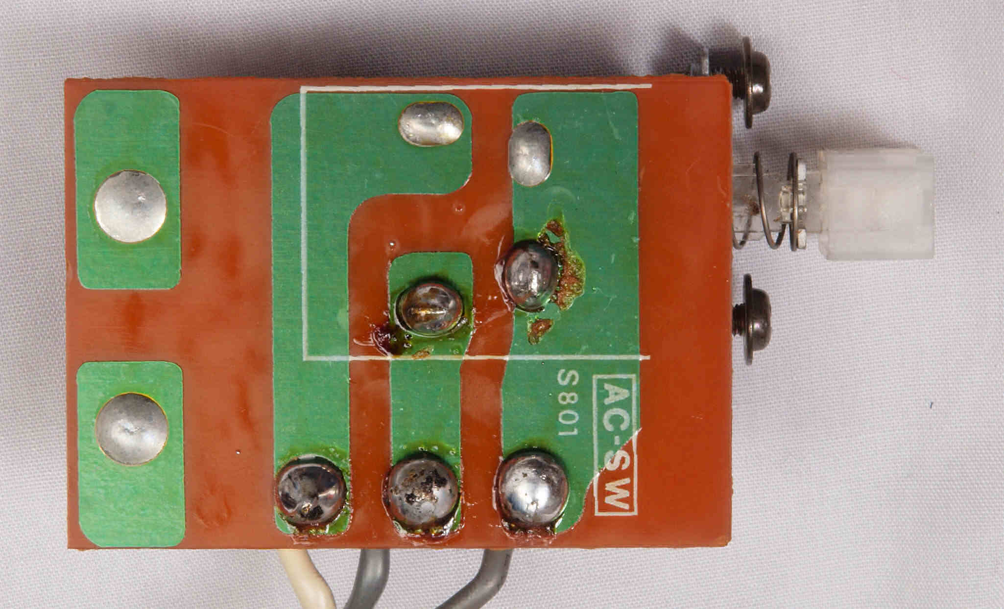 CJ1. 修理前 ヒューズ&コンセント基板裏。