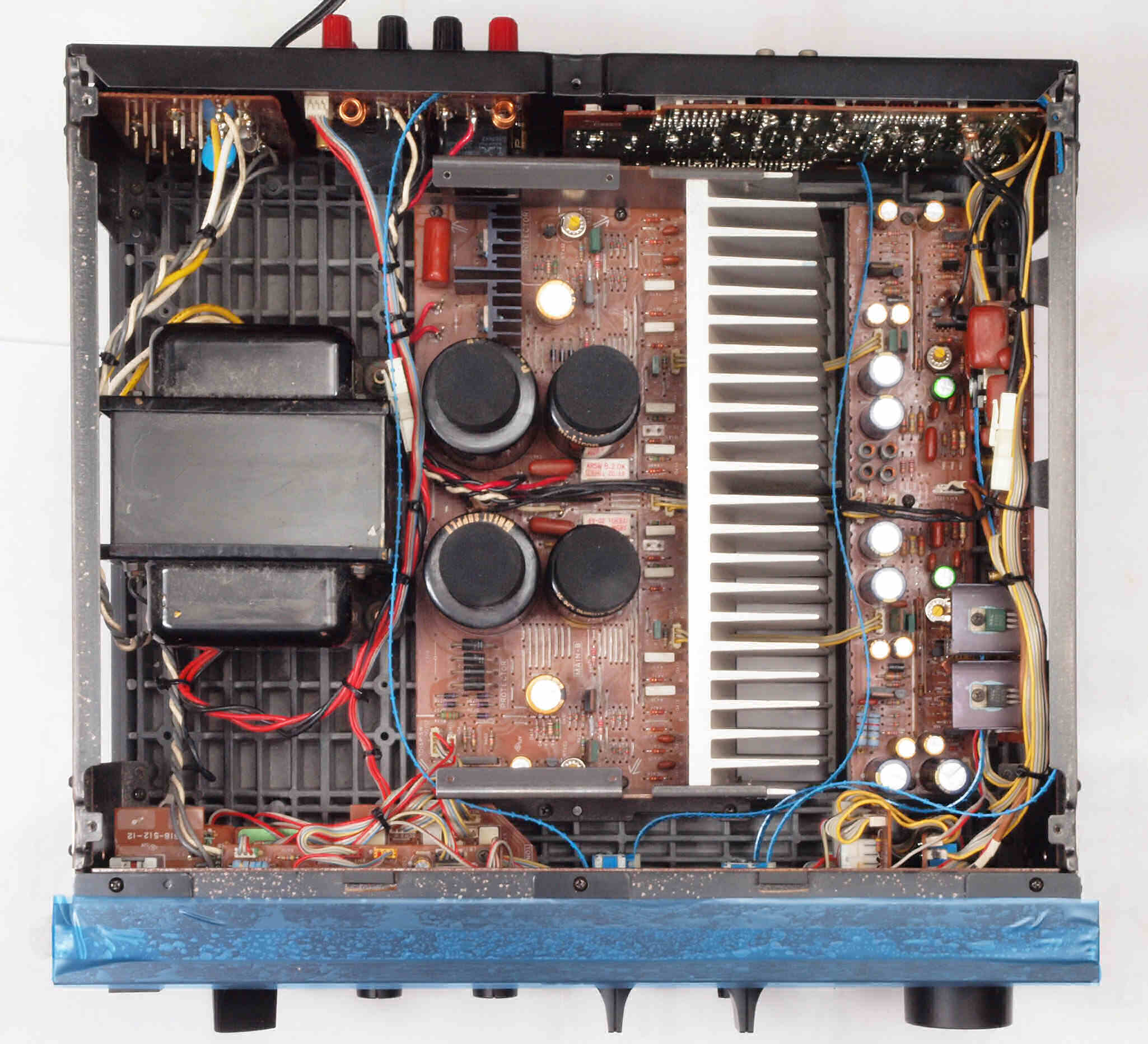 A18. 点検中 終段AMP基板。 左側ヒューズ入抵抗は全滅。
