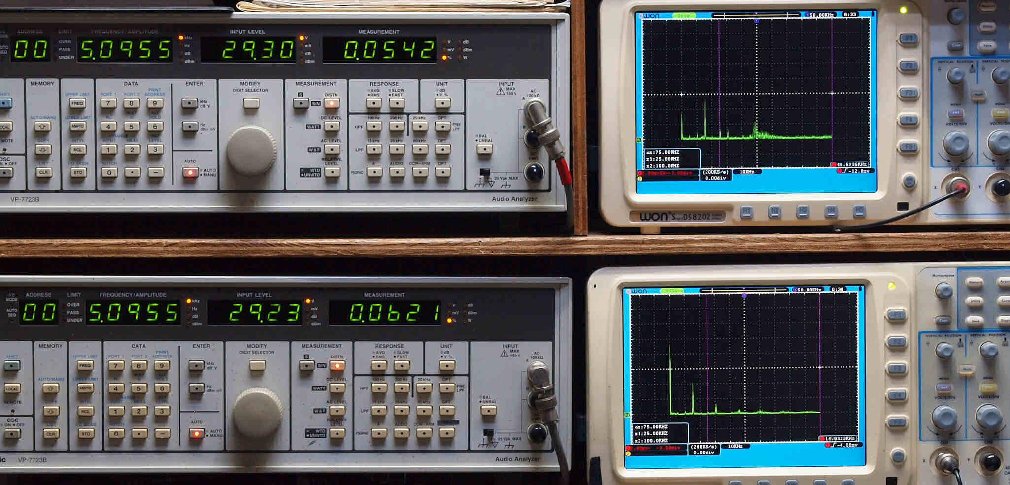 よって、ダイアル設定出力レベルより低くなります。測定機器の仕様や整備の様子はこちら、「VP−7723B」「VP−7201A」。 FFT画面の見方はこちら。