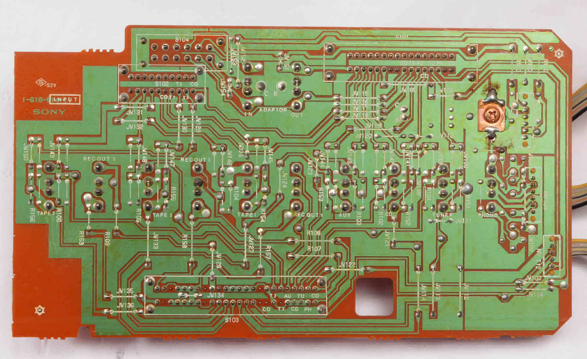 CI2. 修理中 SP出力端子裏 使用済み吸い取り線で補強する。