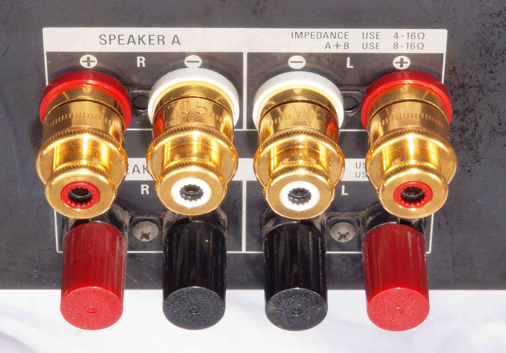 A34. 点検中 SP接続端子交換。空いている穴が大きく、隠し来てませんがWBT−0730PLに交換可能。WBT−0730も使用可能。