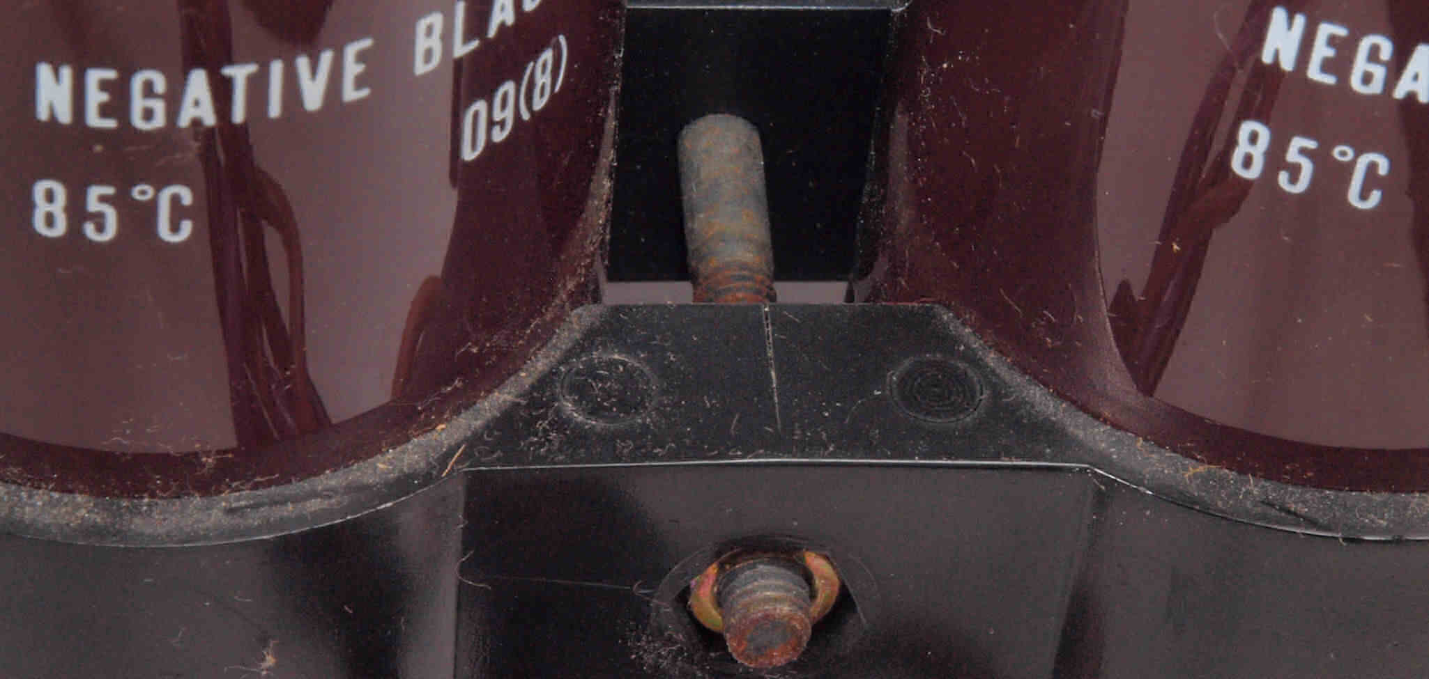 | CH1. 修理前 ブロック電解コンデンサー下電極。 | ||||||||||||||||||||||||||||||||||||