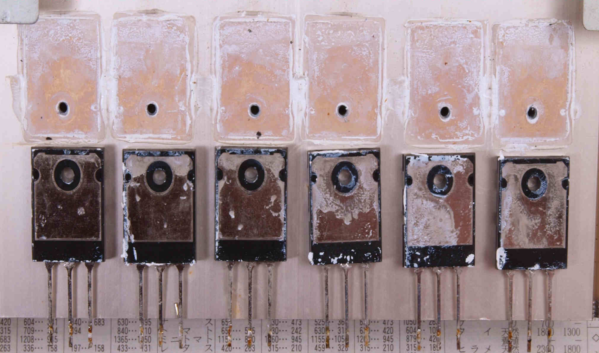 A61. 点検中 交換する終段TR(トランジスター)は、大量購入して、「hfe」を測定し、選別して使用する。