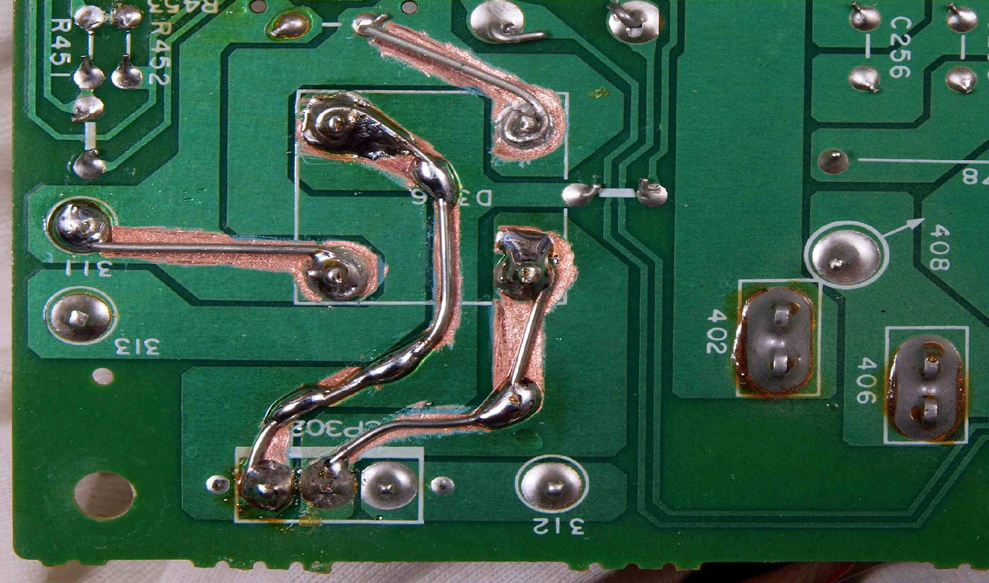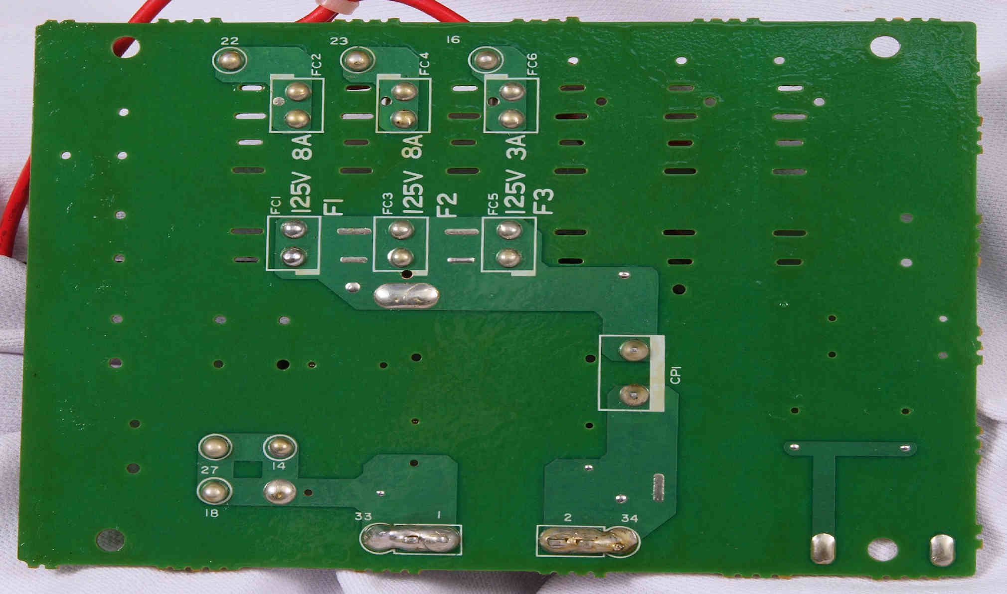 CC3. 修理(半田補正)後 フューズ基板裏 半田を全部やり直す。