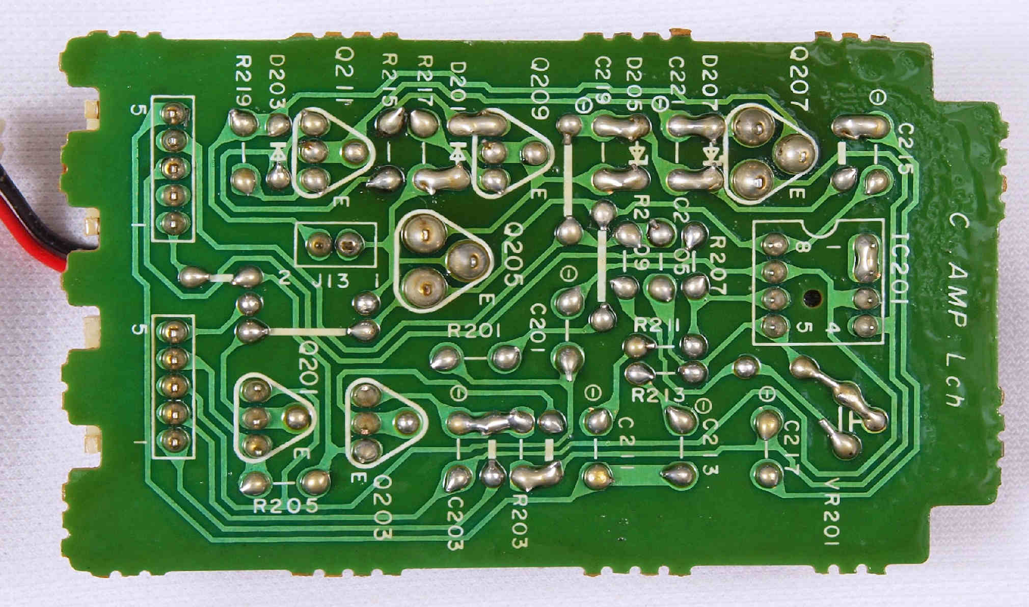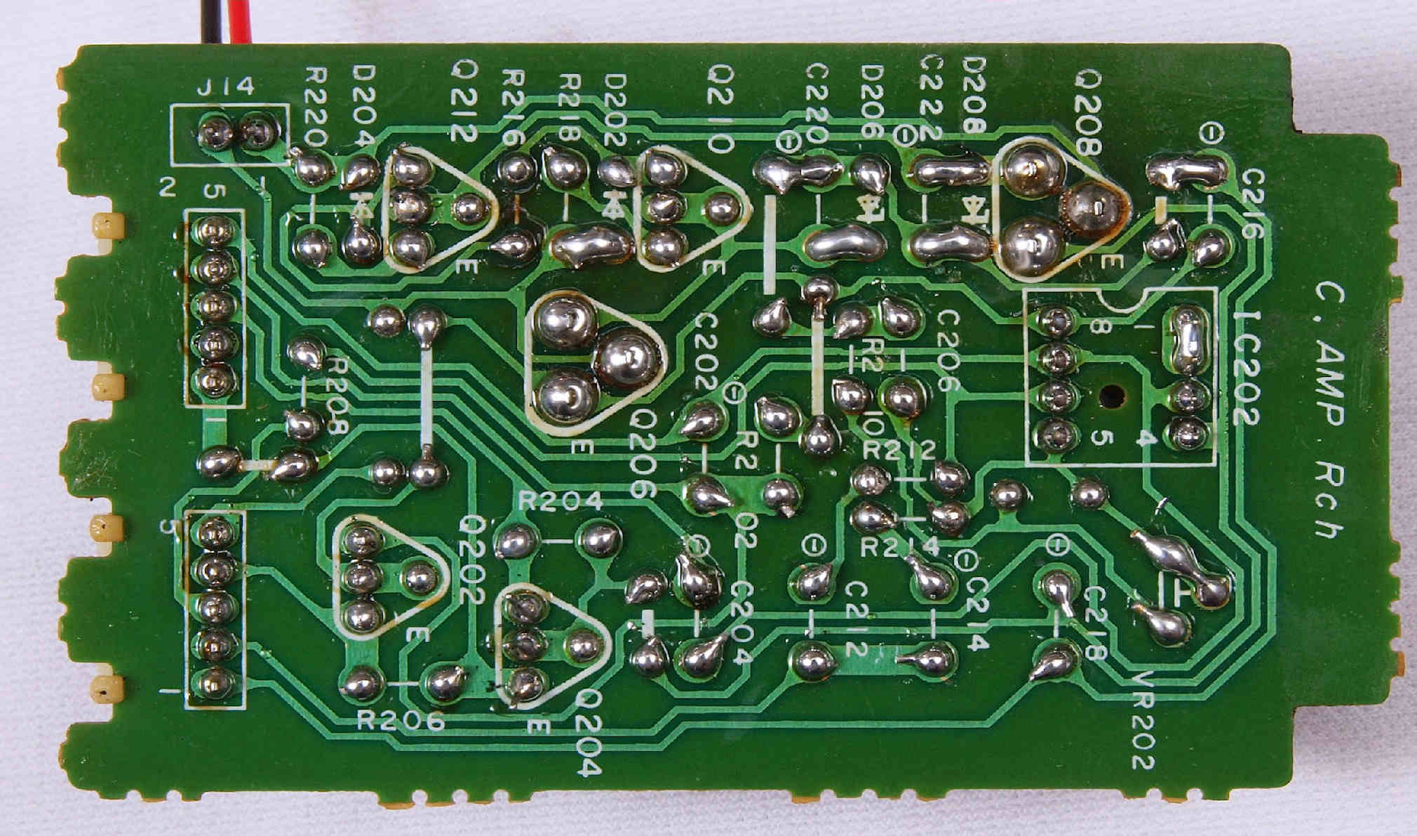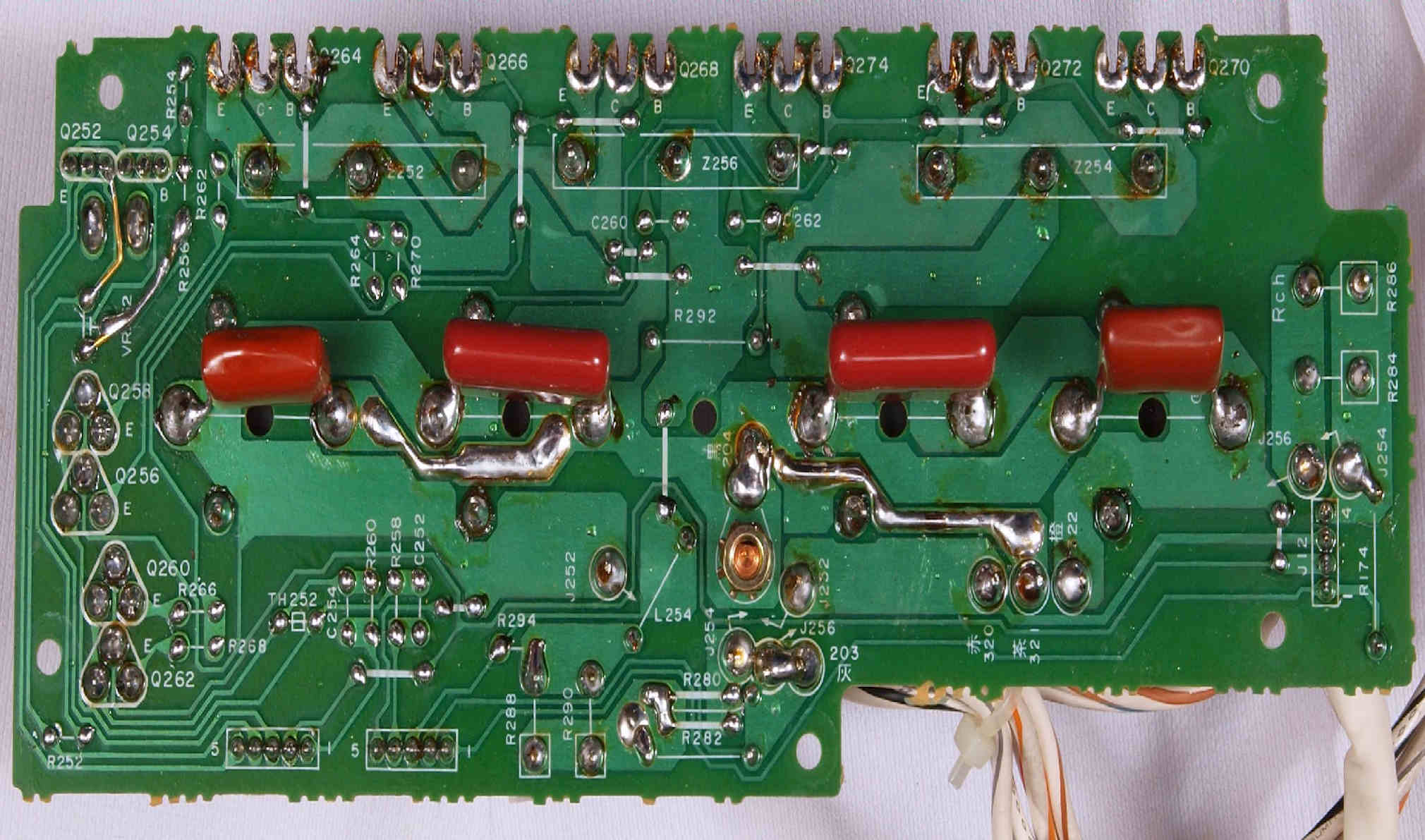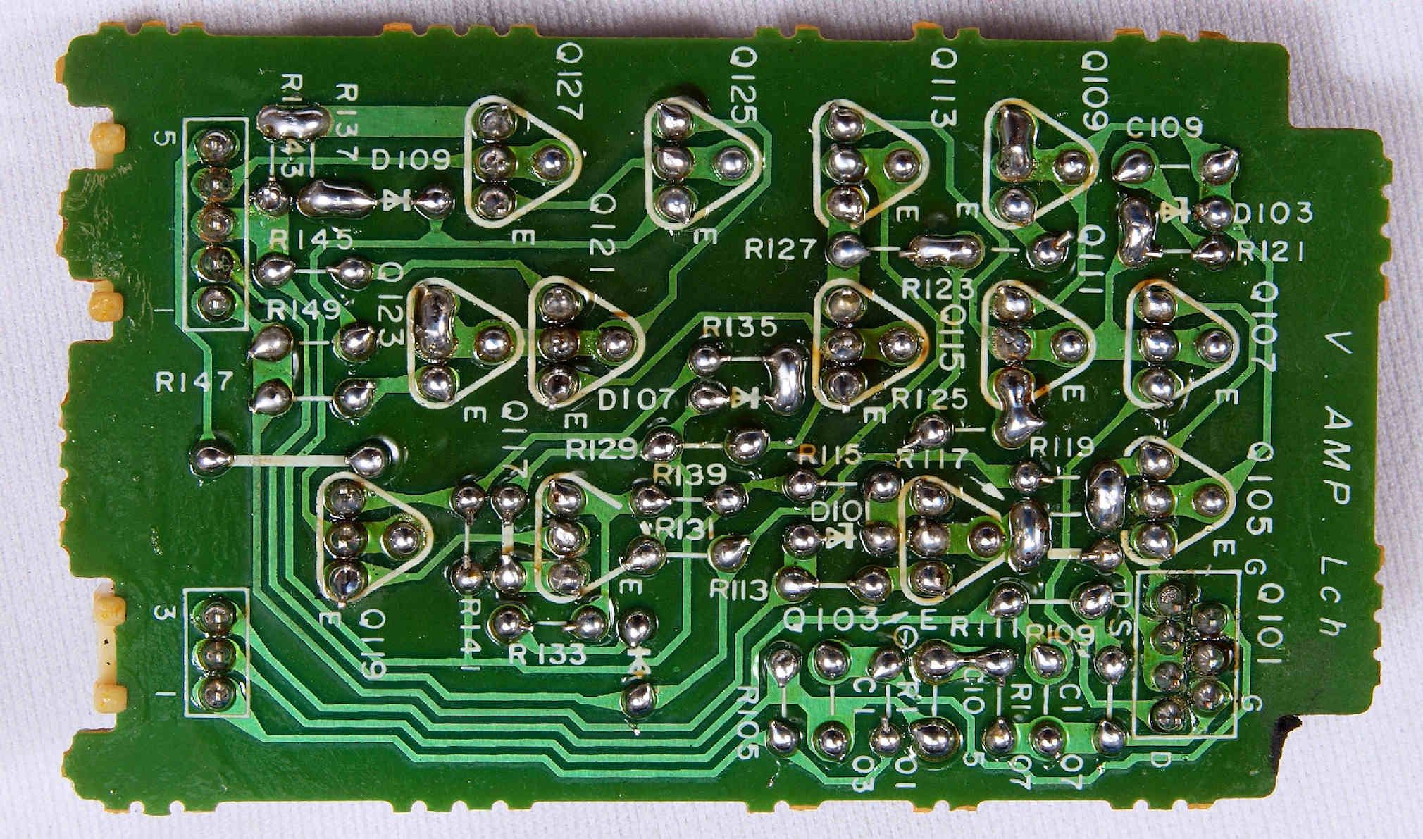 C44. 修理(半田補正)後 L側電圧コントロールAMP基板裏 半田を全部やり直す。 普通はこれで完成。