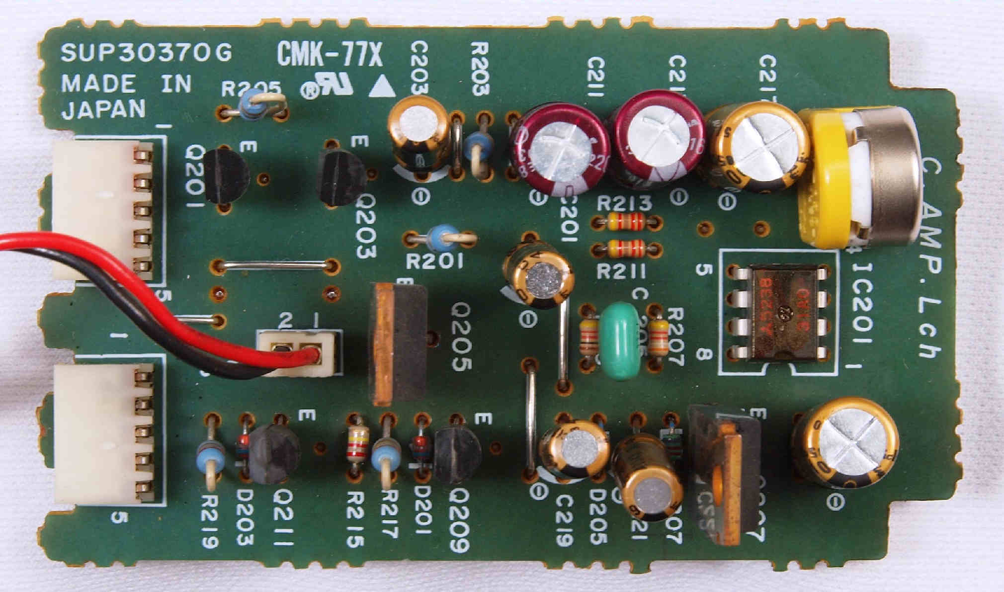 C32. 修理後 R側電圧コントロールAMP基板。 初段FET(電解トランジスター)、電解コンデンサー交換。