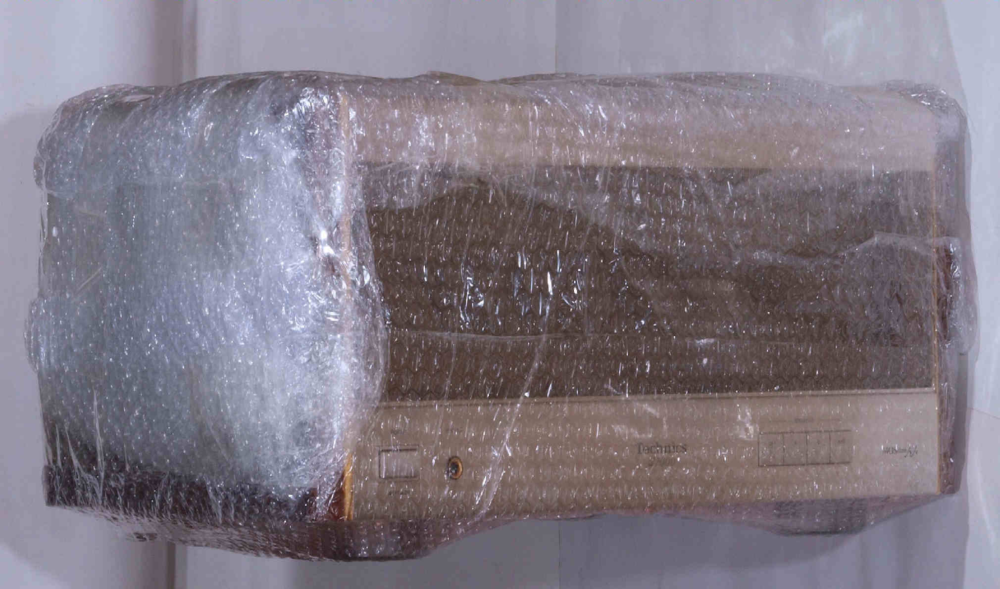 AMPが固定されていない、後ろのSP接続端子がダンボールを破った跡あり。