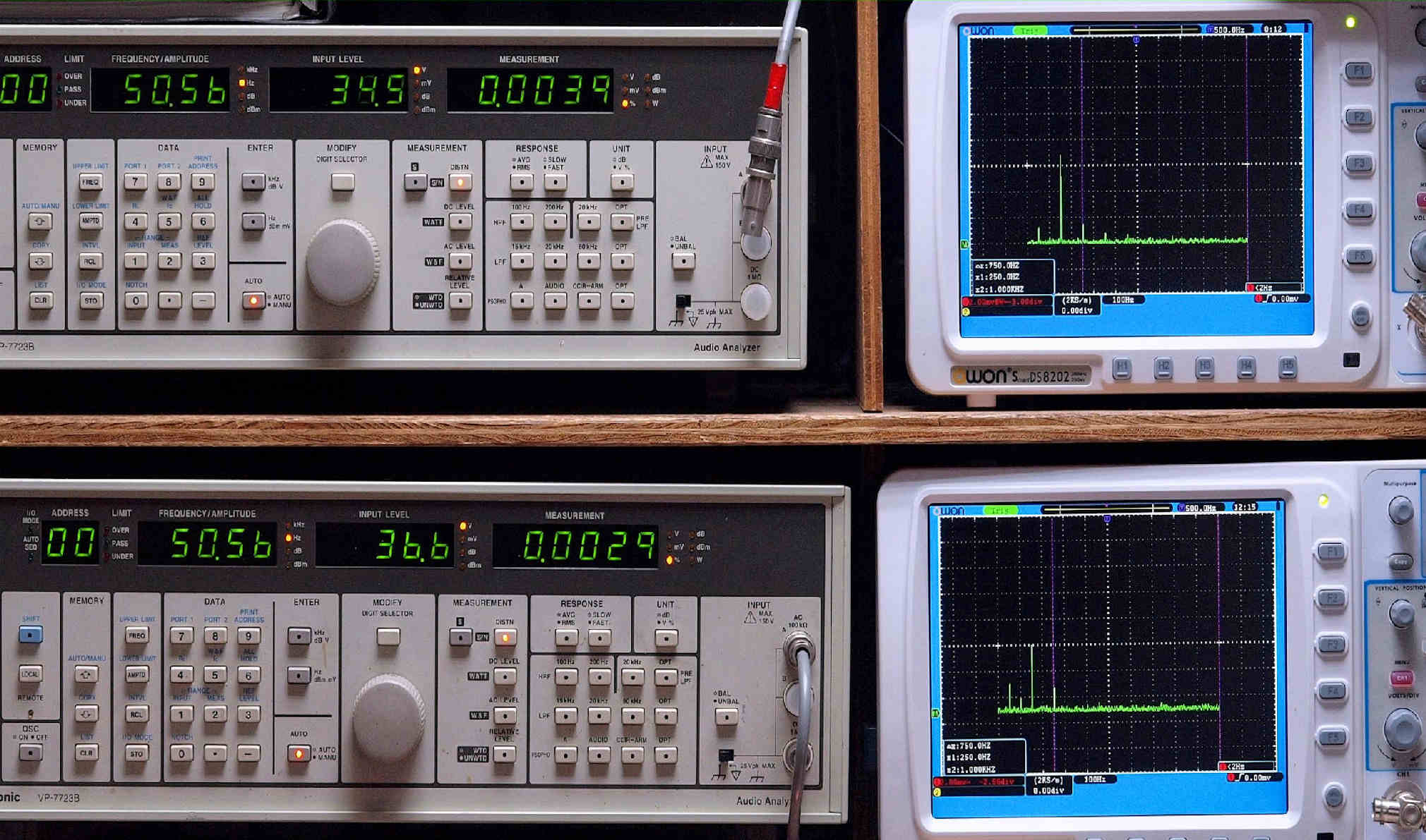 E21. 50Hz入力、R側SP出力電圧37V=171W出力、 0.0039%歪み。