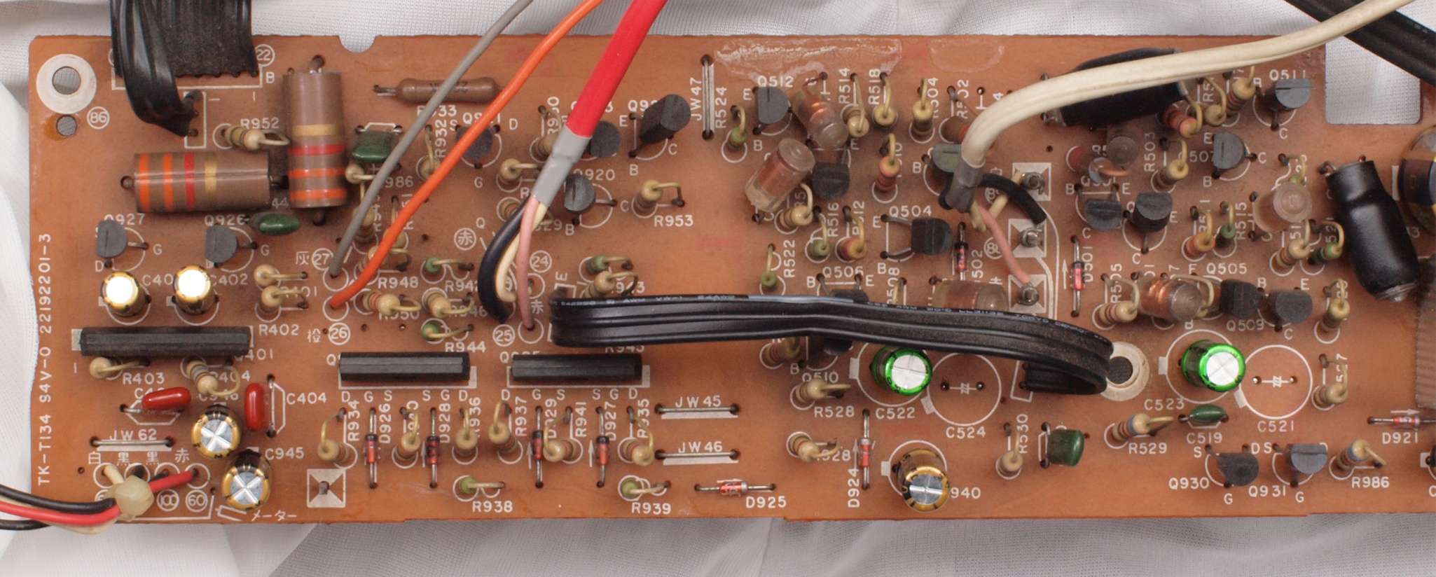 C62. 修理後 電源 & Drive基板。電解コンデンサー12個、半固定VR6個、フィルムコンデンサー4個、TR(トランジスター)2個交換。